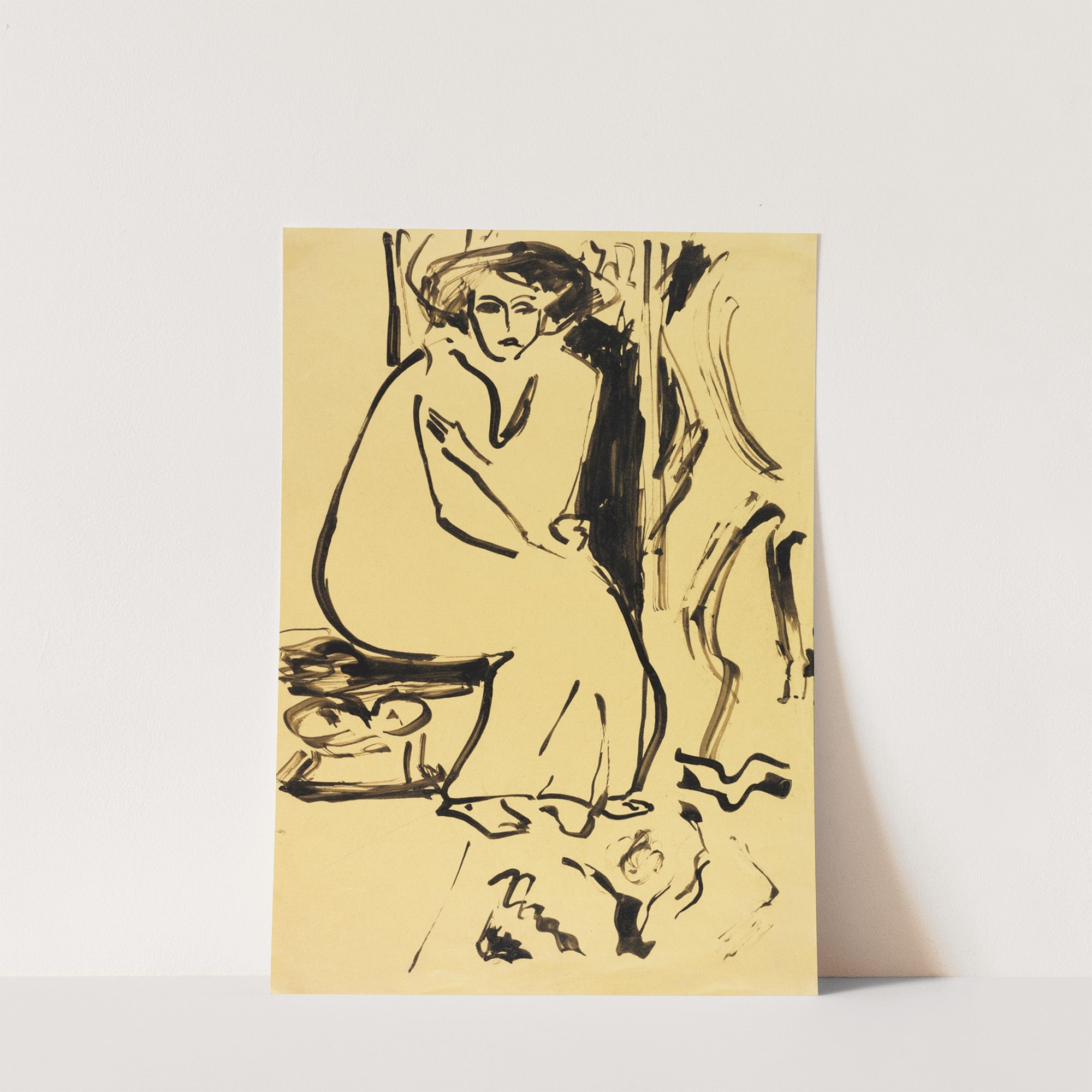 Sitzende in langem Kleid (1910) by Ernst Ludwig Kirchner - Wall Art Print