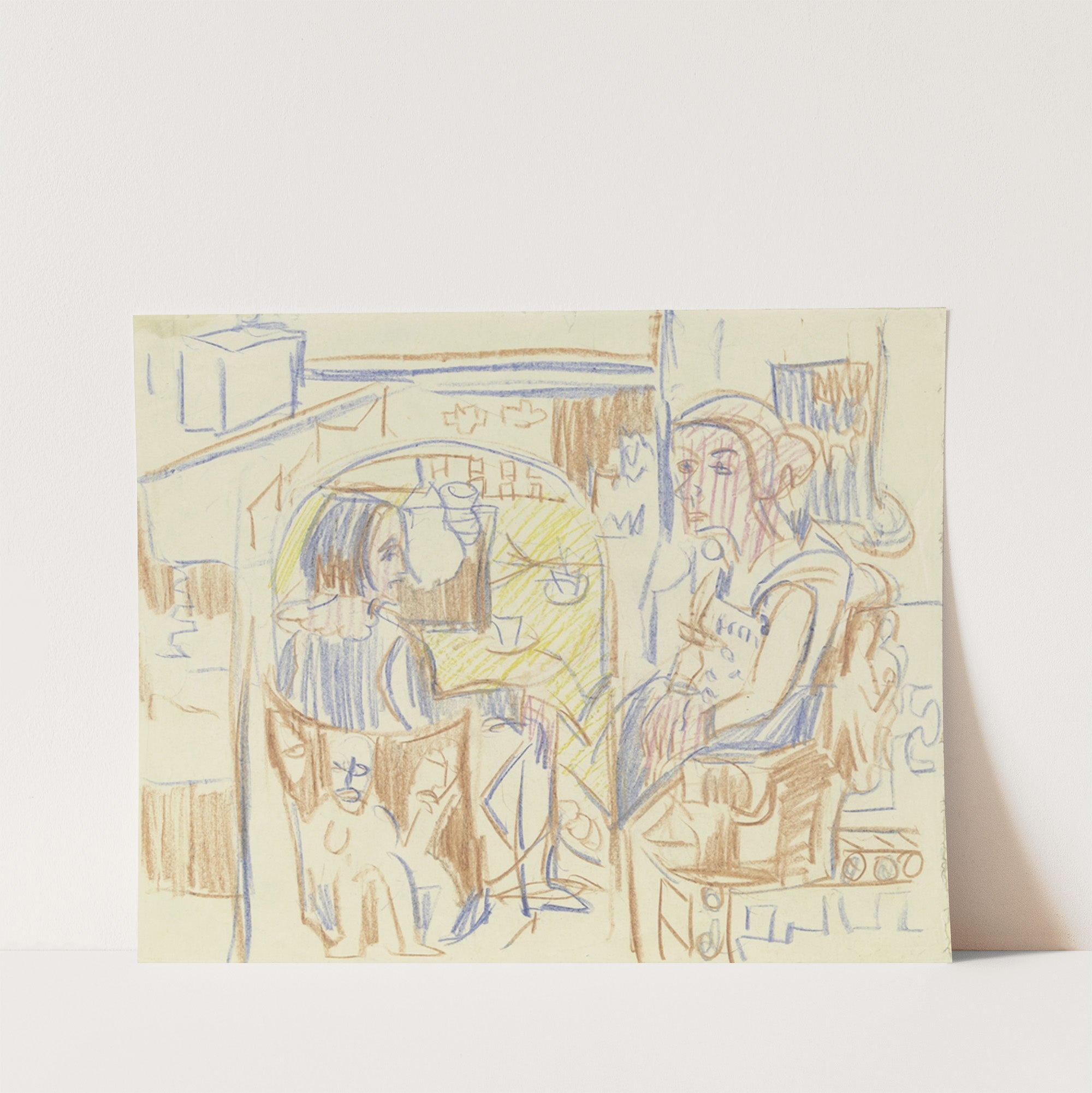 Zwei Frauen am Kaffeetisch in Kirchners Atelier (ca 1923) by Ernst Ludwig Kirchner - Wall Art Print