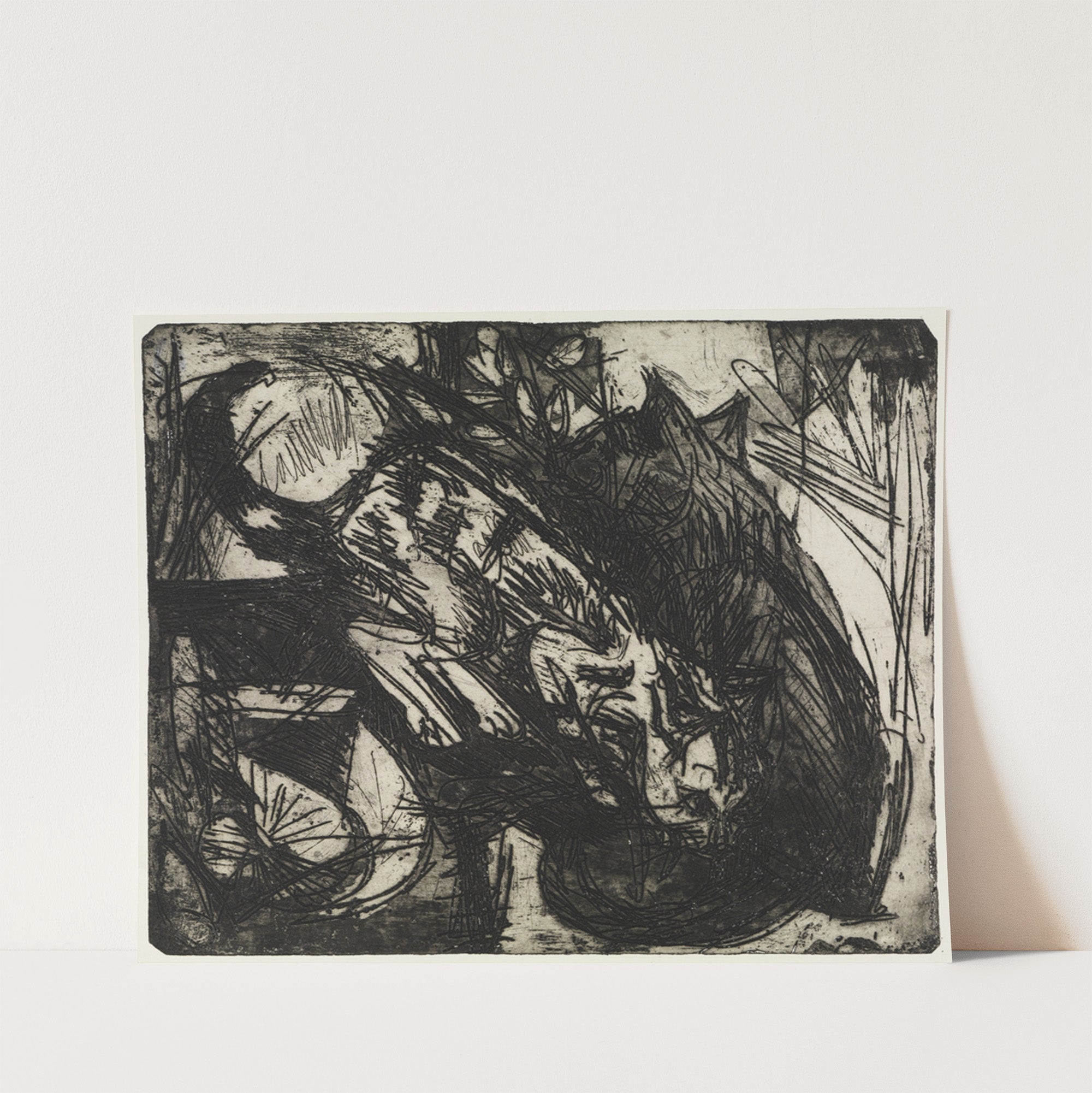 Zwei Katzen;Berghäuser – Stafelalp (1919) by Ernst Ludwig Kirchner - Wall Art Print