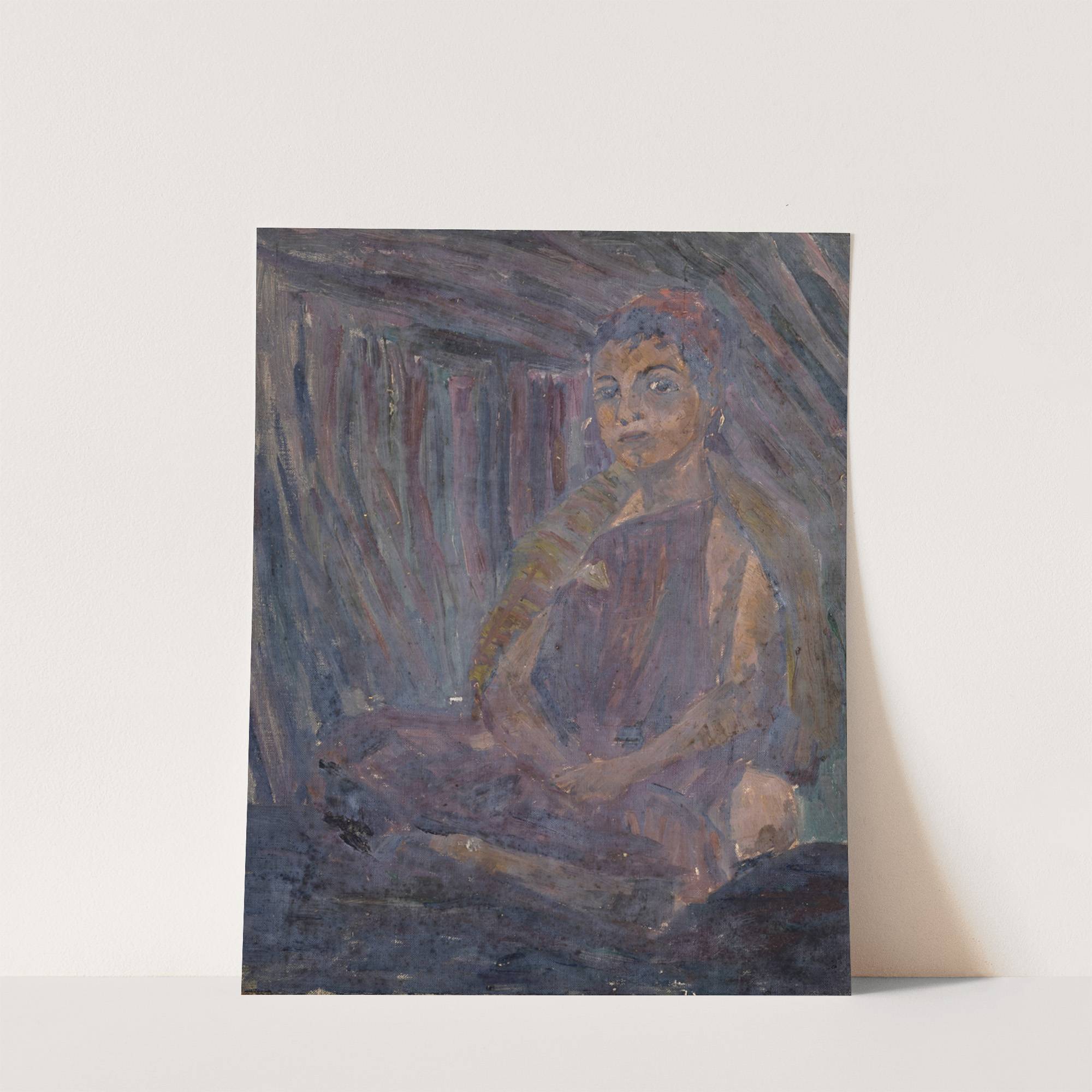 Hockender Beduinenjunge in Zelt by Ernst Schiess - Wall Art Print
