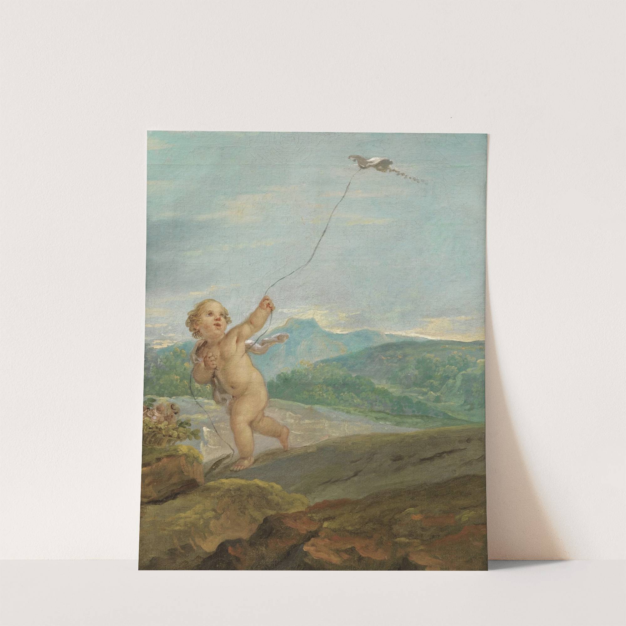 Ange jouant avec un cerf volant by Etienne Parrocel - Wall Art Print