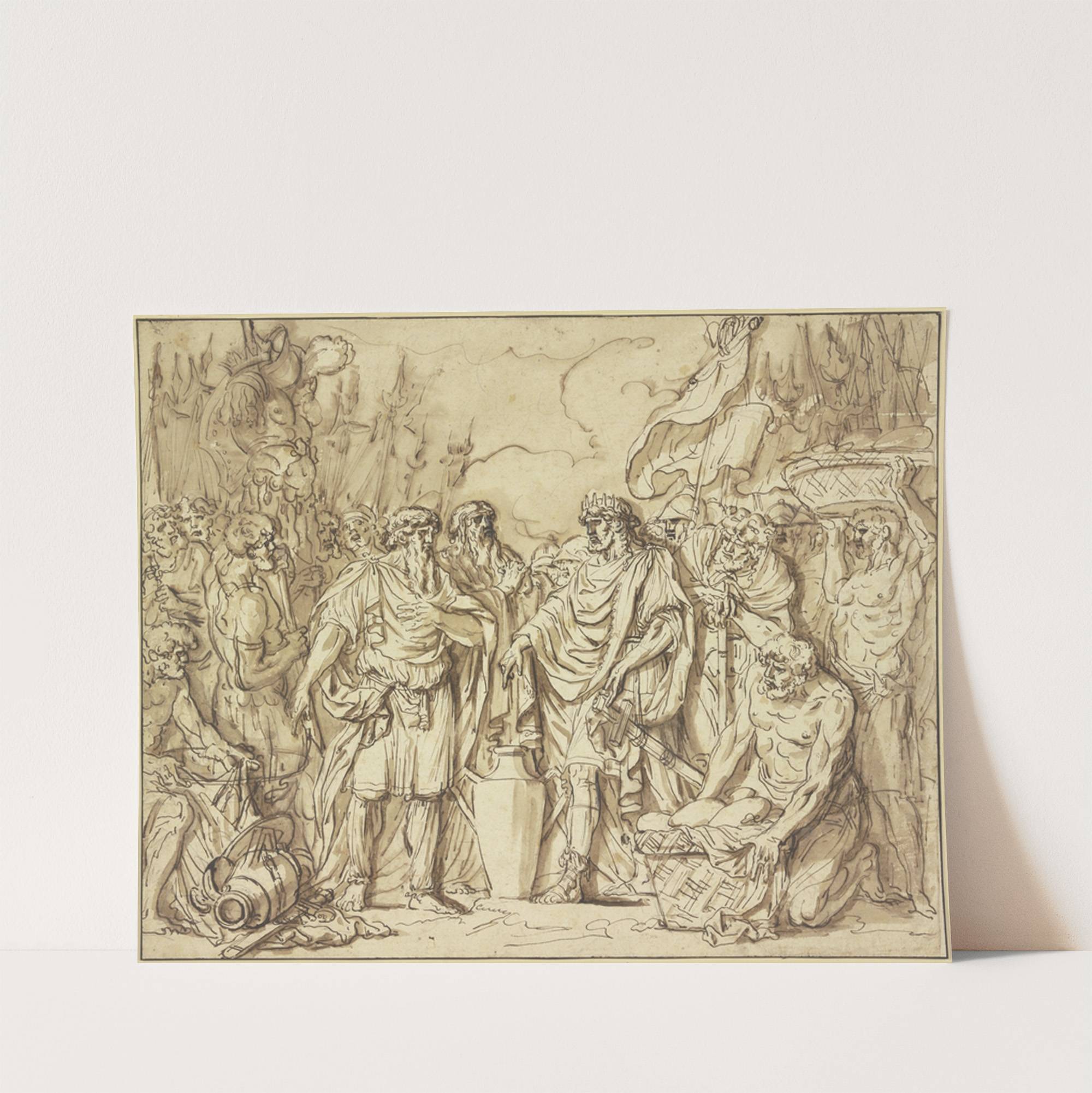 Abraham und Melchisedek opfern Brot und Wein zum Dank für die Besiegung der fünf Könige by Etienne Pierre Adrien Gois - Wall Art Print