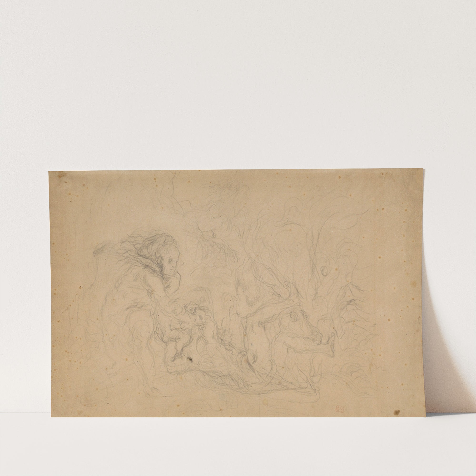 Herkules kaster Diomedes for hans egne heste by Eugène Delacroix - Wall Art Print