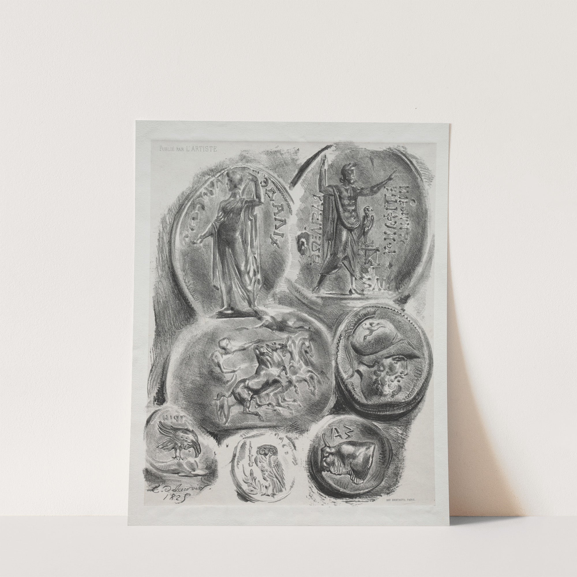 Sheet with Seven Antique Medals (1825) by Eugène Delacroix - Wall Art Print