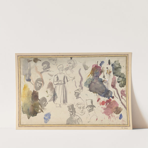 Studies of male heads and a standing male figure by Eugène Delacroix - Wall Art Print