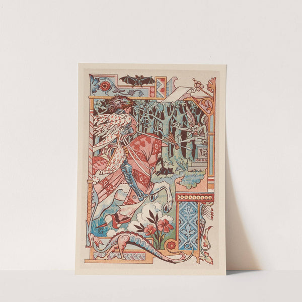 Chevalier sur son cheval pointant sa lance contre un diablotin by Eugène Grasset - Wall Art Print