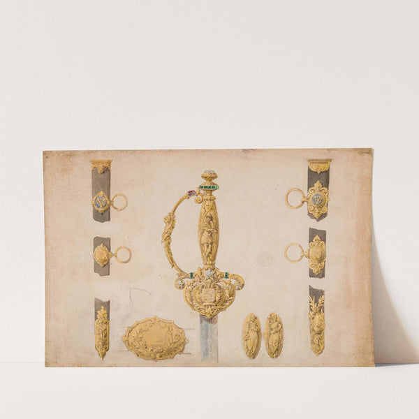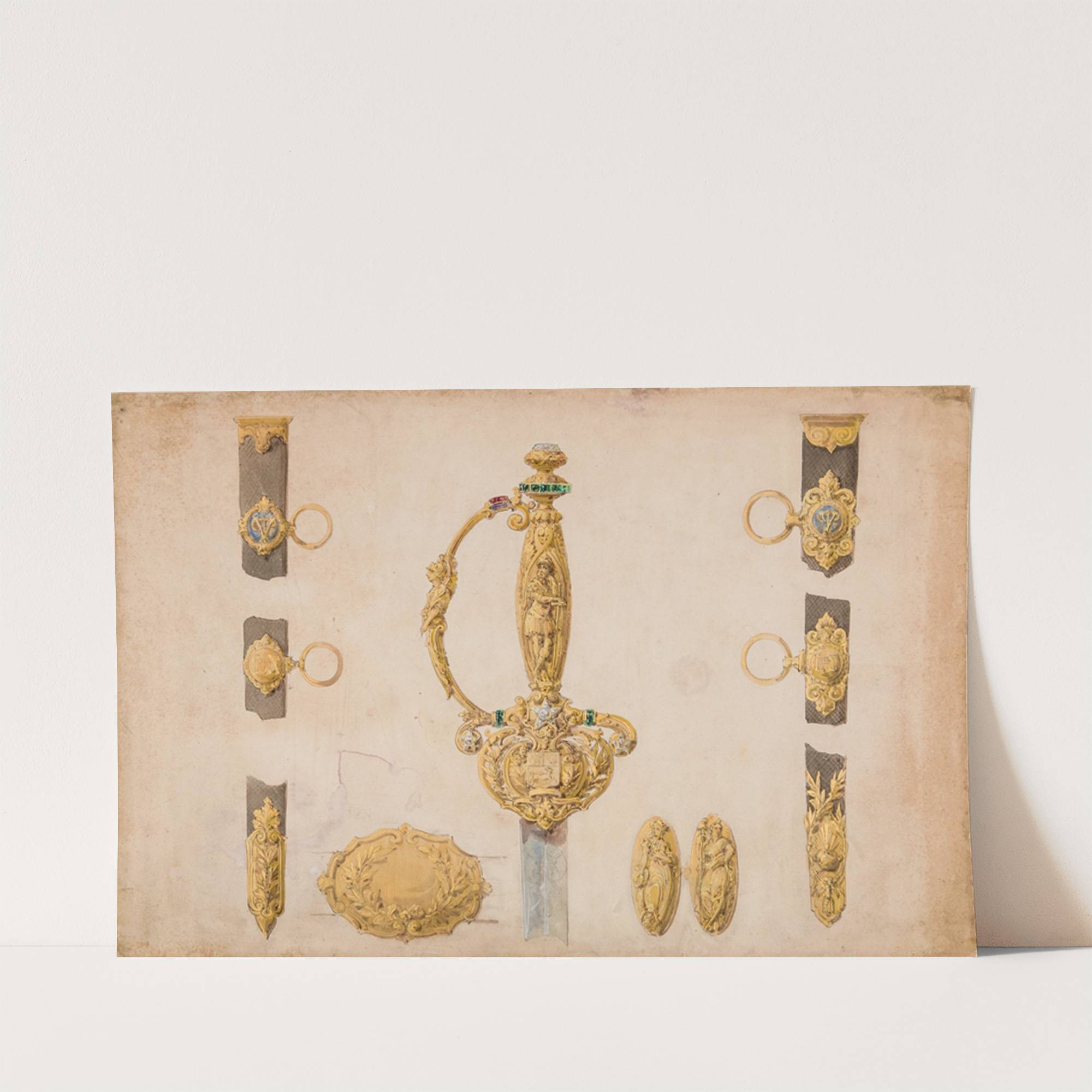 Design for a Sword Hilt, Scabbard, and Belt Fittings by Eugène Julienne - Wall Art Print