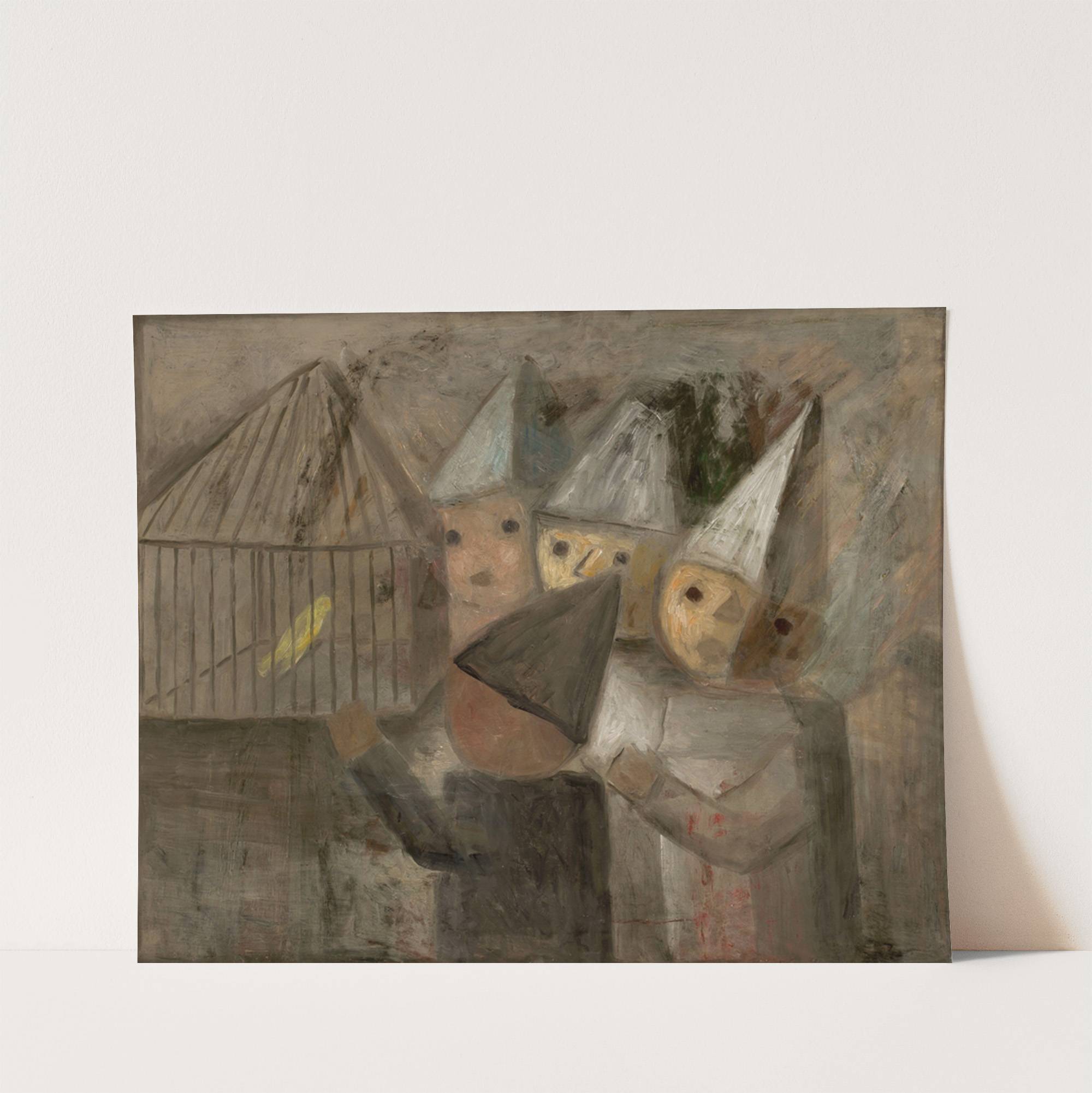 Children in front of a cage with a canary by Tadeusz Makowski - Wall Art Print