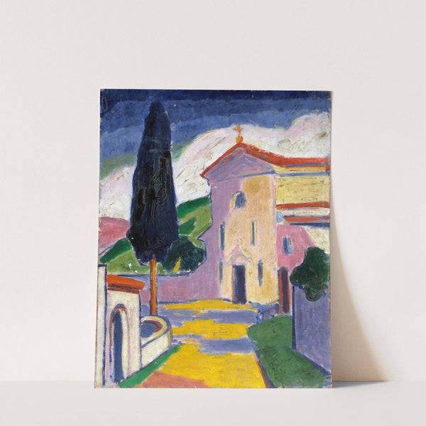 Church with Cedar Tree on Left by Carl Newman - Wall Art Print