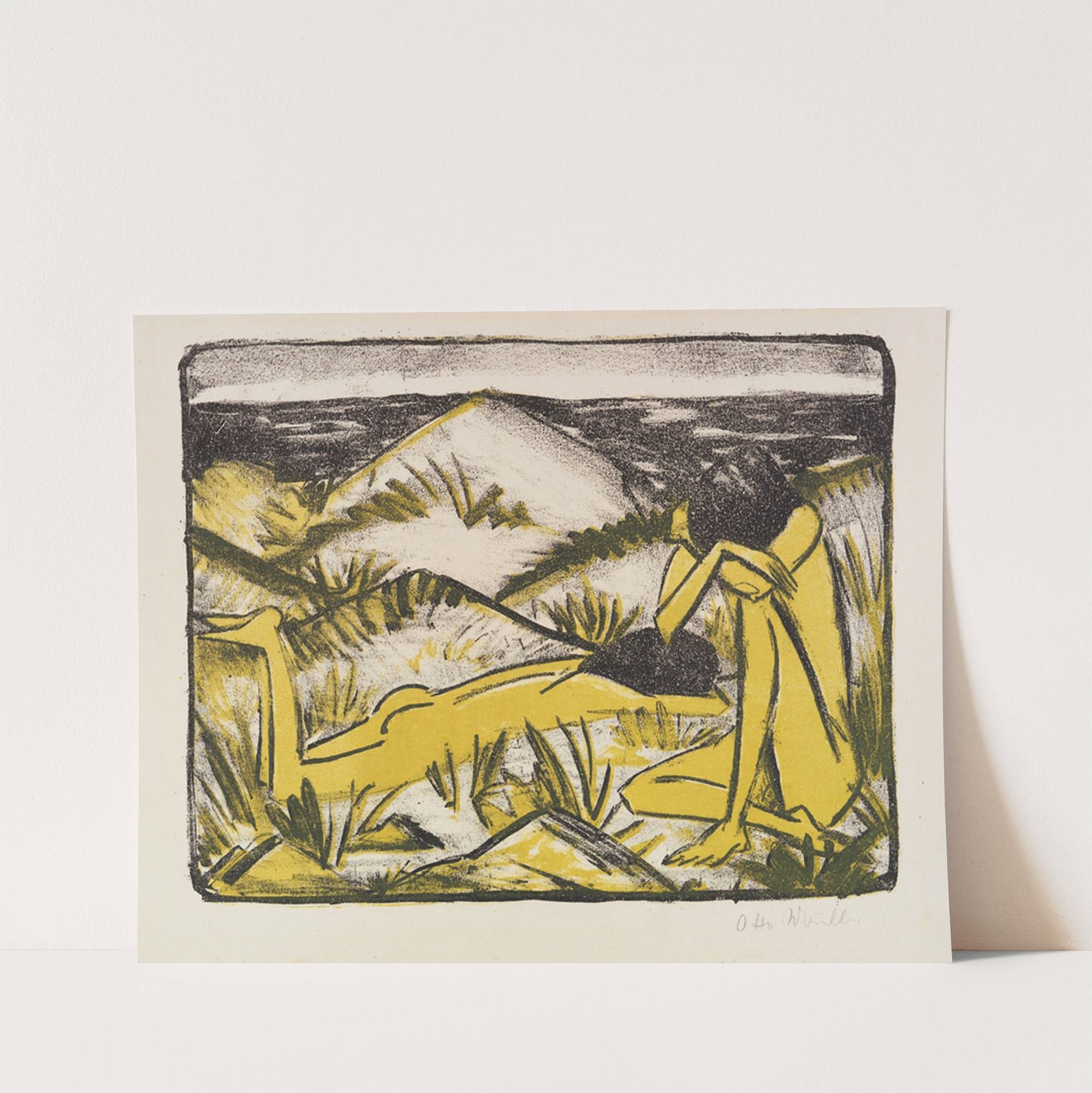 Ein in Dünen sitzendes und ein liegendes Mädchen (Zwei Mädchen in den Dünen, Sylt) by Otto Mueller - Wall Art Print