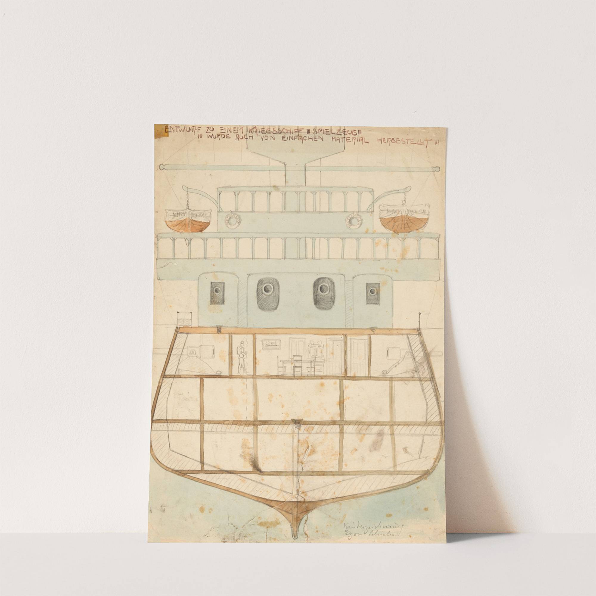 Entwurf zu einem Kriegsschiff-Spielzeug (ca 1905) by Egon Schiele - Wall Art Print