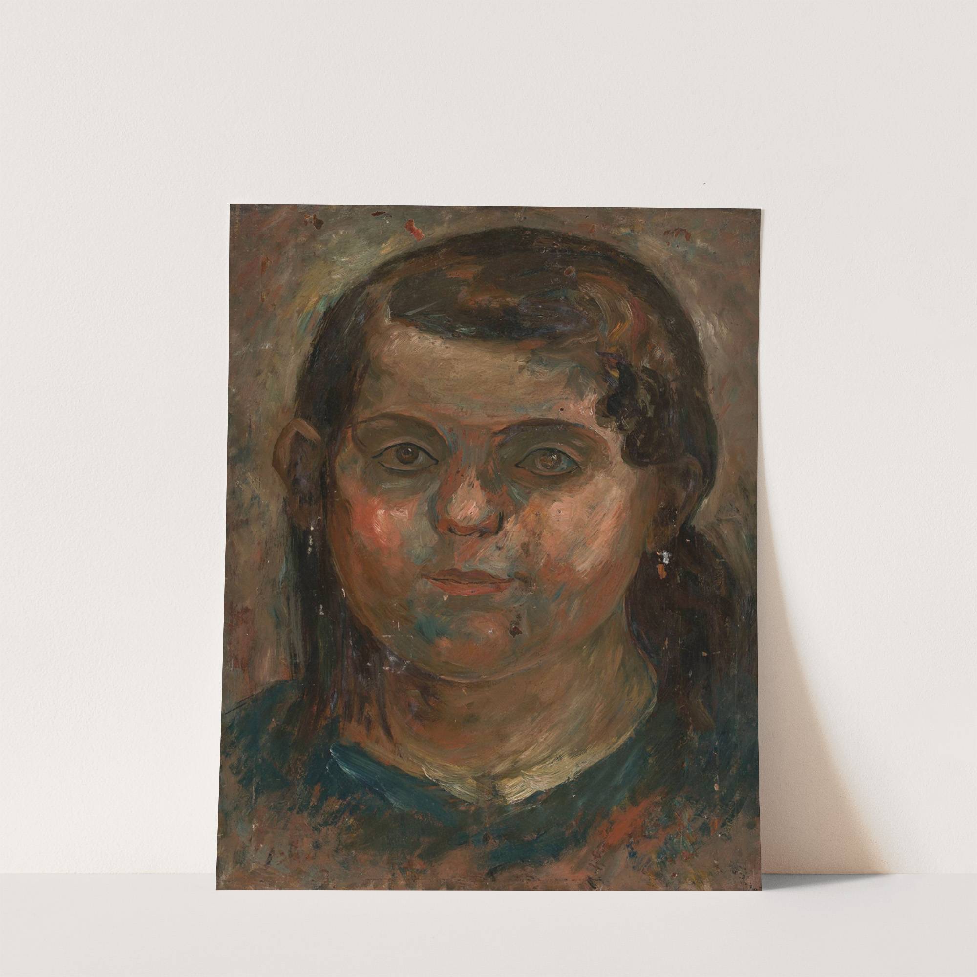 Head of a little girl in a blue dress by Tadeusz Makowski - Wall Art Print