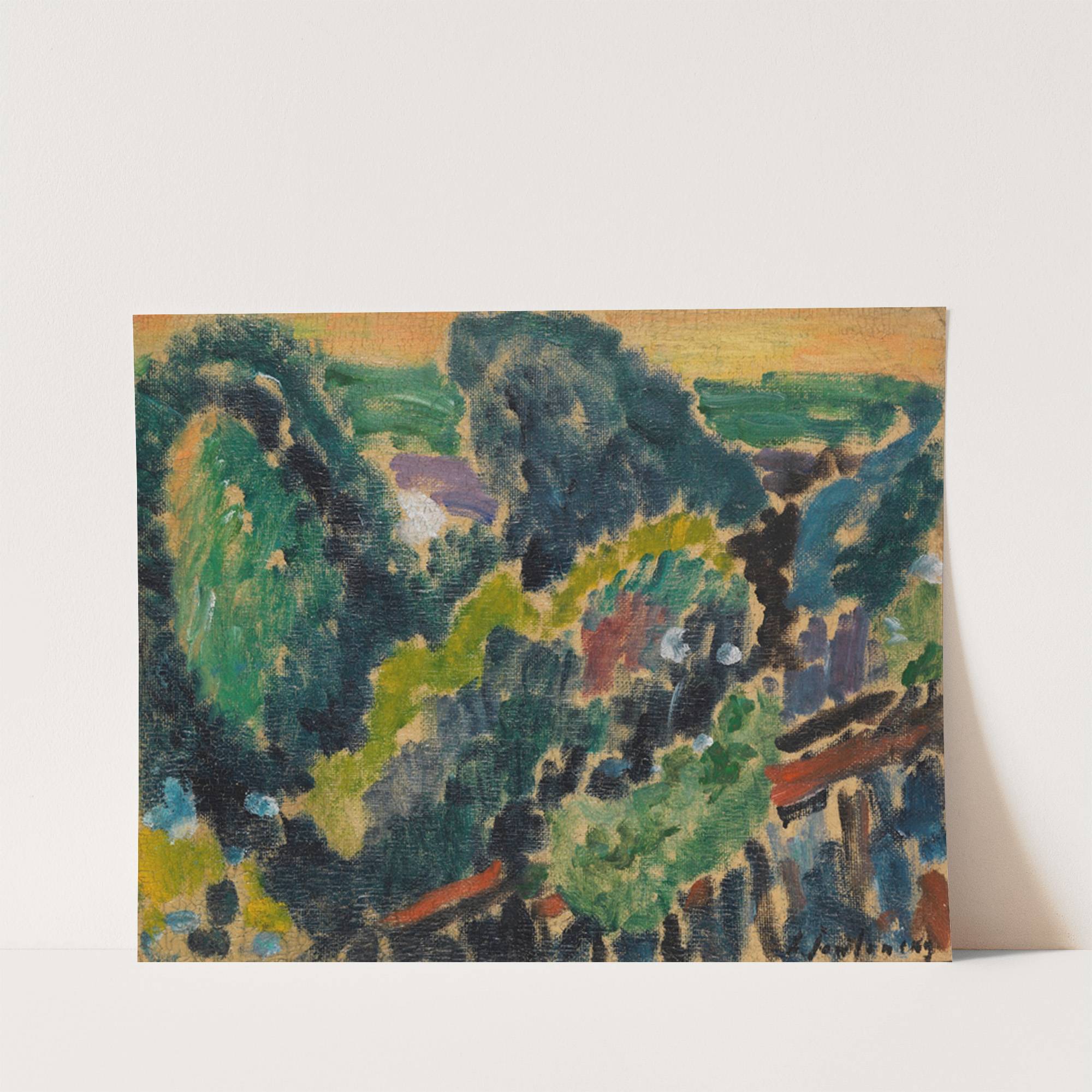 This vibrant art print features "Landschaft am Genfersee" by Alexej von Jawlensky, known for his expressive and abstract style. The composition is a dynamic mix of bold colors and swirling brushstrokes, creating an energetic landscape that captures the essence of...