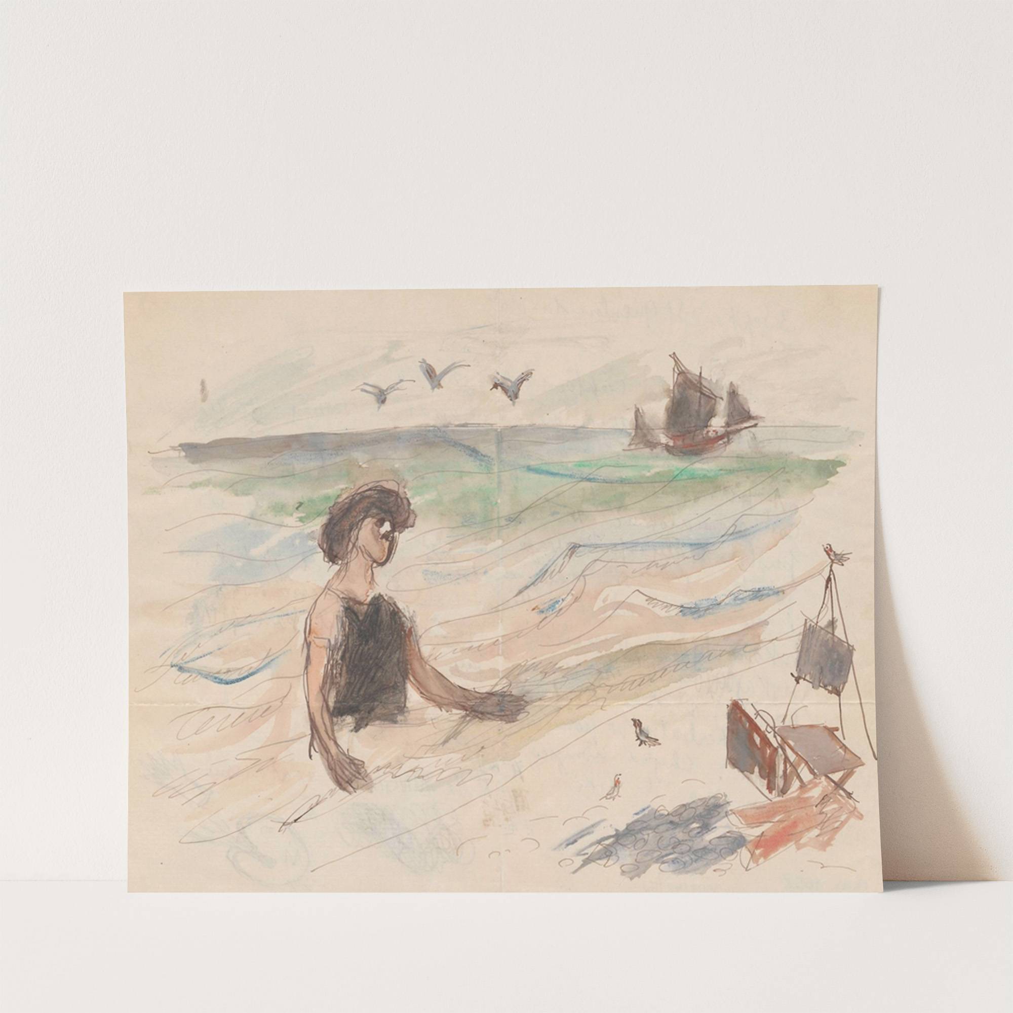 Letter to Maria Mickiewiczówna with a drawing [self-portrait of the artist bathing in the by Tadeusz Makowski - Wall Art Print