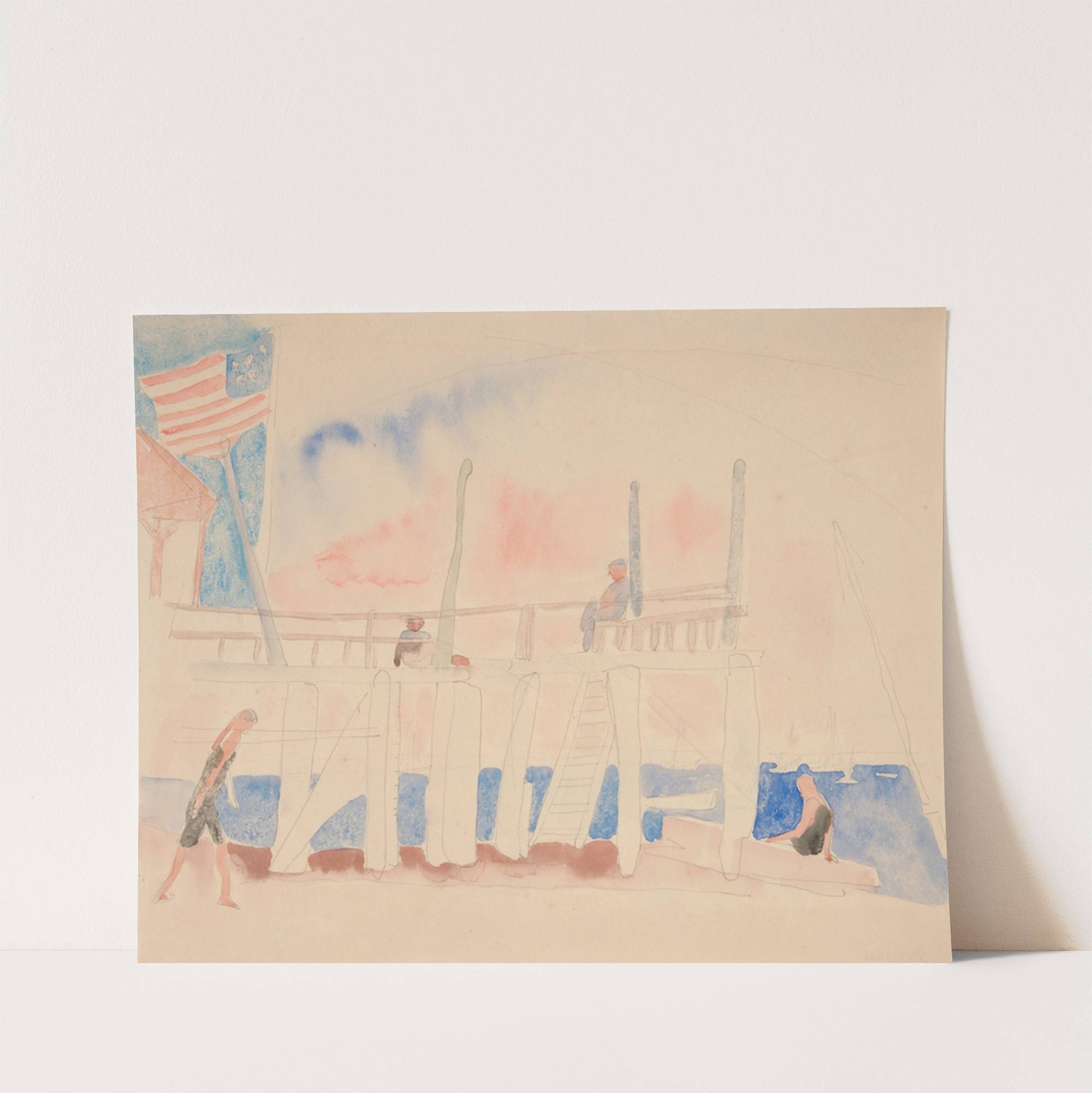 Pier With Four Figures by Charles Demuth - Wall Art Print