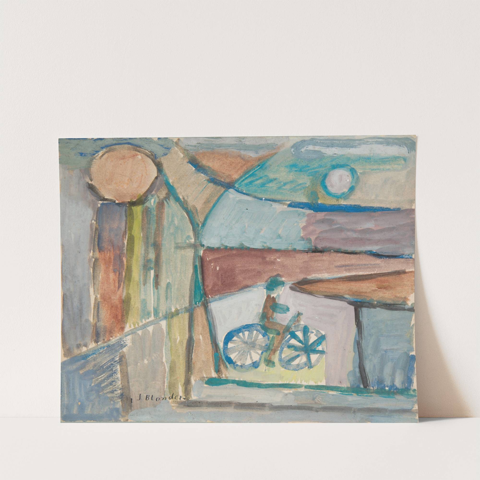Rowerzysta na tle pejzażu by Sasza Blonder - Wall Art Print