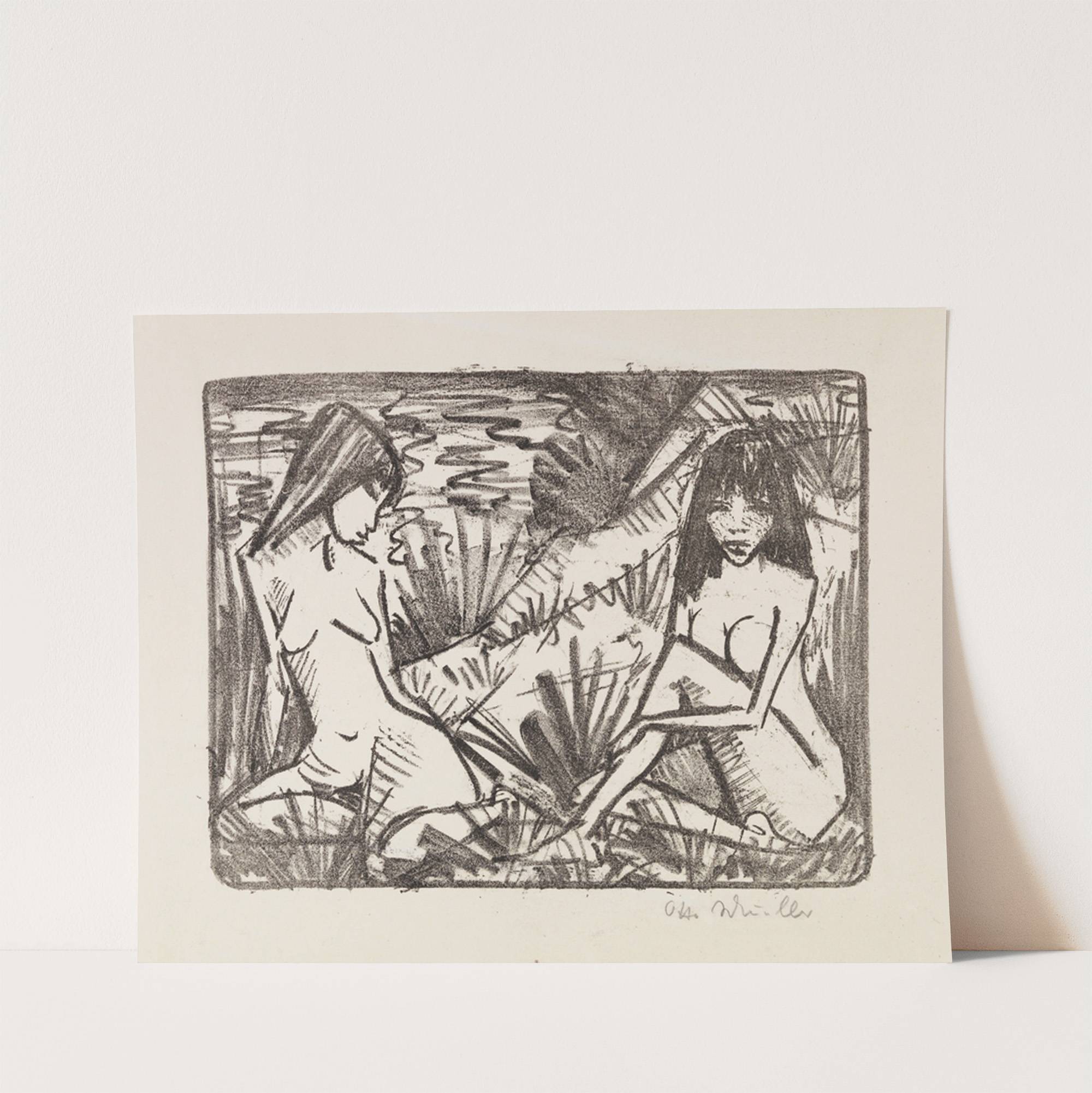 Zwei in Dünen sitzende Mädchen by Otto Mueller - Wall Art Print