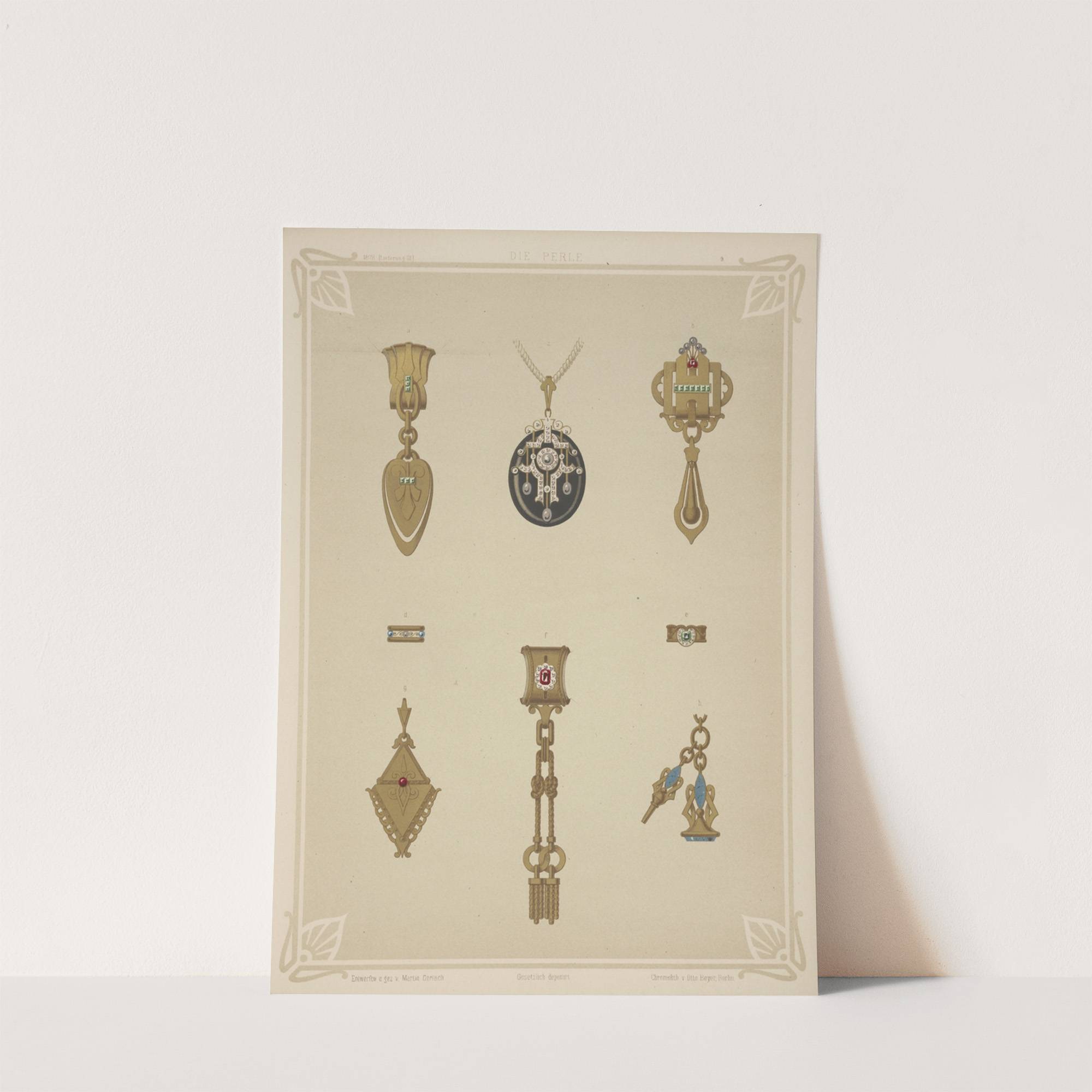 Eight Designs For Jewelry, Including Large Pin With Pearls And Flowers. by Martin Gerlach - Wall Art Print