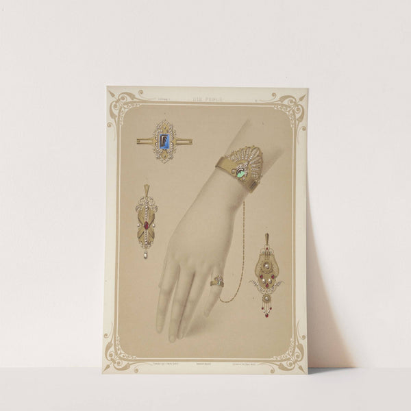 Four Designs For Jewelry, Including Large Necklace With Pink Stones. by Martin Gerlach - Wall Art Print