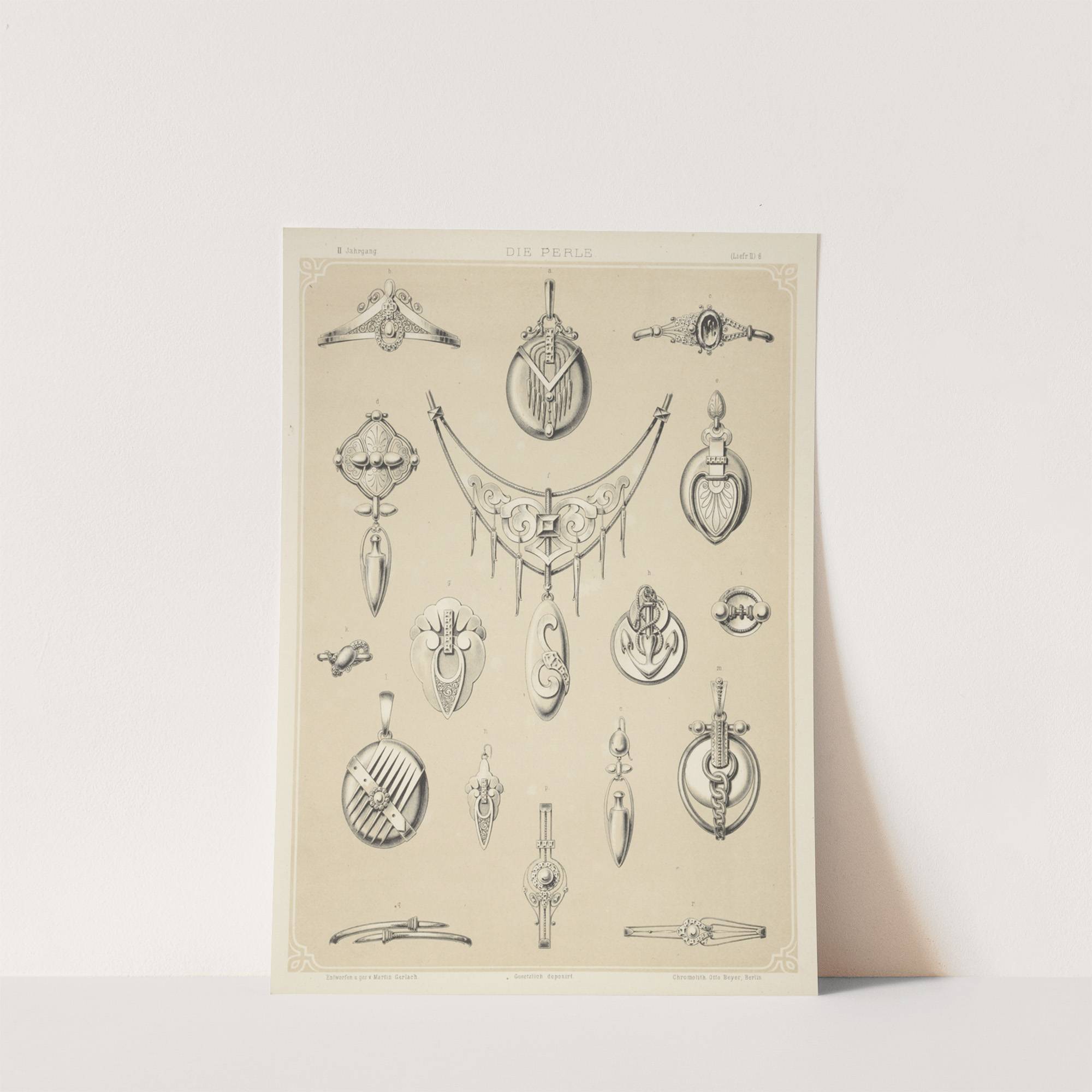 Ii Jahrgang (Liefr. Iii) Bl. 8. [Eight Designs For Jewelry, Including Black Choker With Gold Pendant.] by Martin Gerlach - Wall Art Print