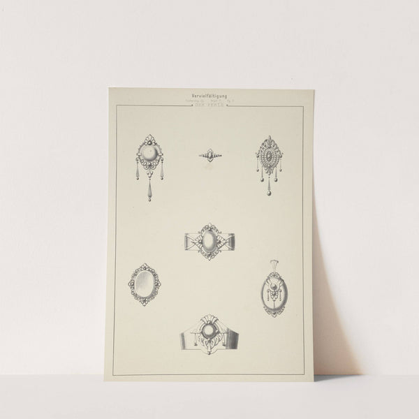Nine Designs For Jewelry, Including Gold Bracelet With Red Stone. by Martin Gerlach - Wall Art Print