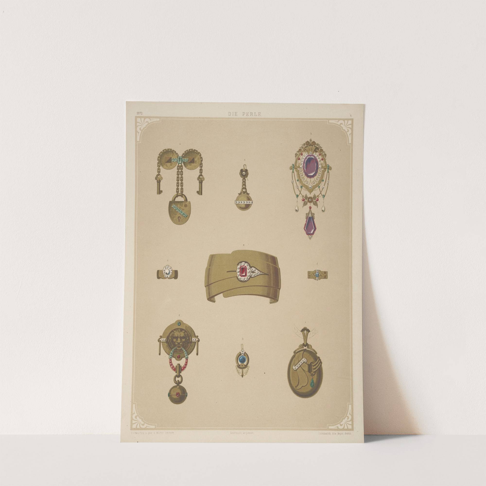 Nine Designs For Jewelry, Including Gold Brooch With Green Stones And Word Hope. by Martin Gerlach - Wall Art Print