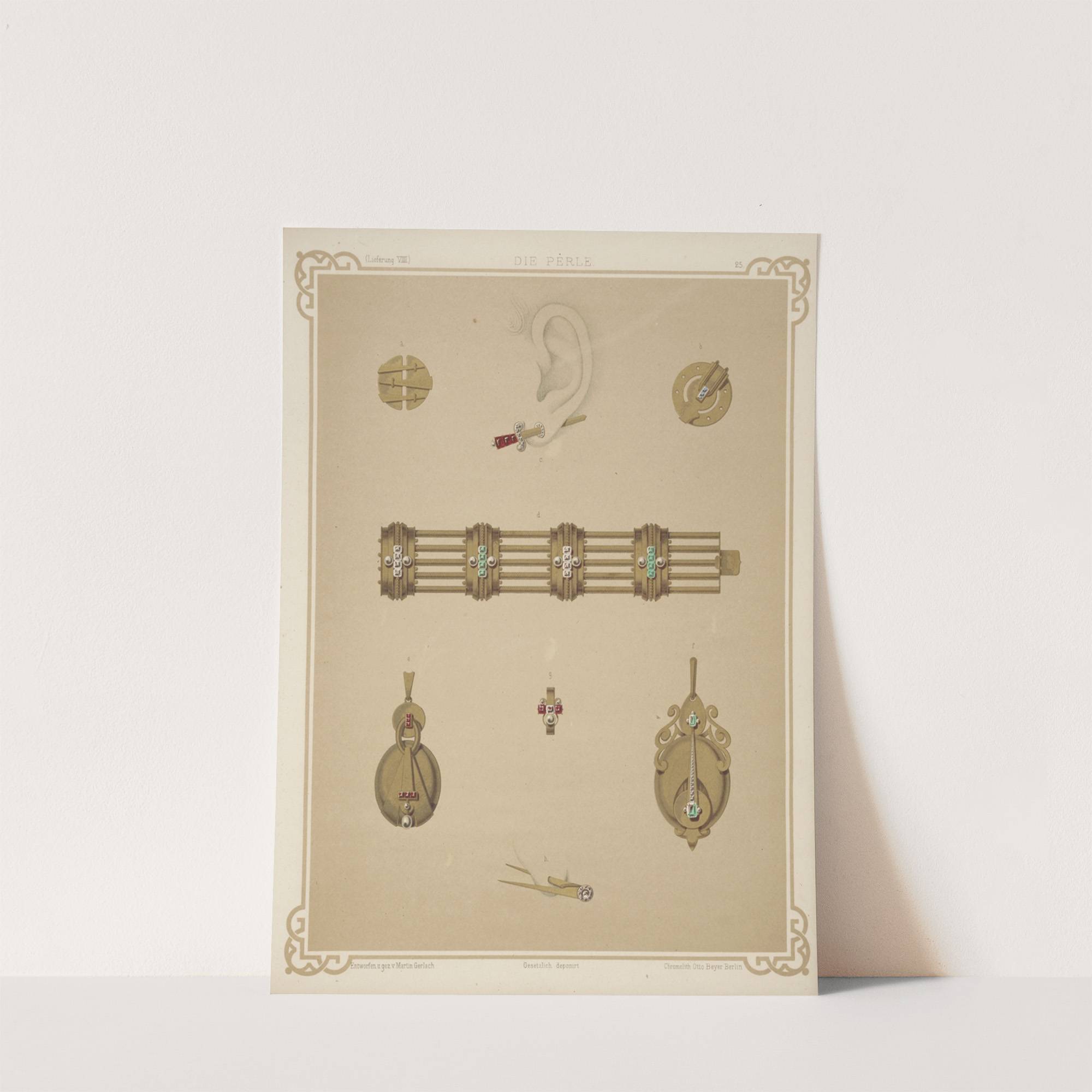 Seven Designs For Jewelry, Including Large Pearl And Diamond Brooch. by Martin Gerlach - Wall Art Print