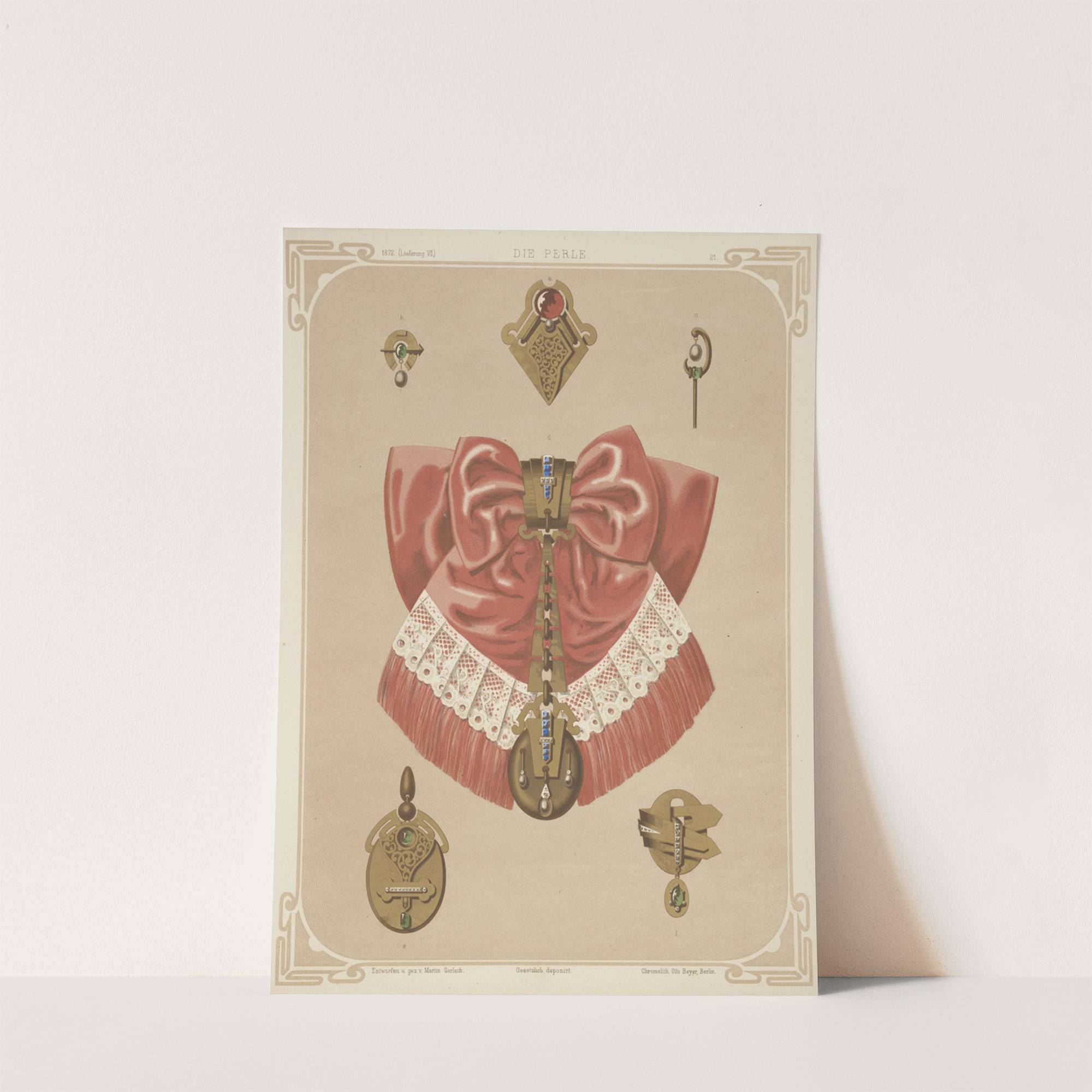 Six Designs For Jewelry, Including Large Necklace With Gold Pendant With Blue Stones. by Martin Gerlach - Wall Art Print