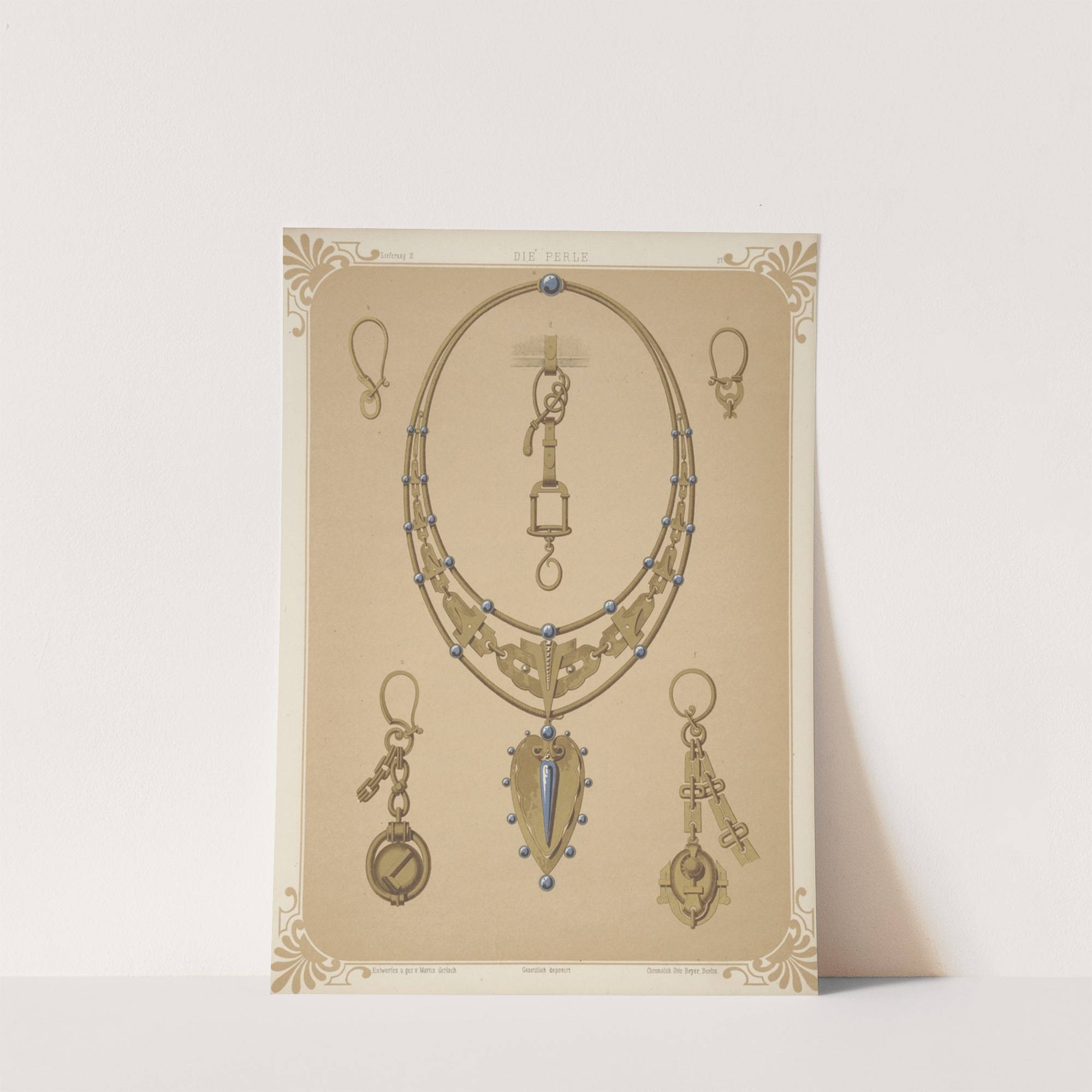 Ten Designs For Jewelry, Including Gold Pointed Bracelet With Green Stones. by Martin Gerlach - Wall Art Print