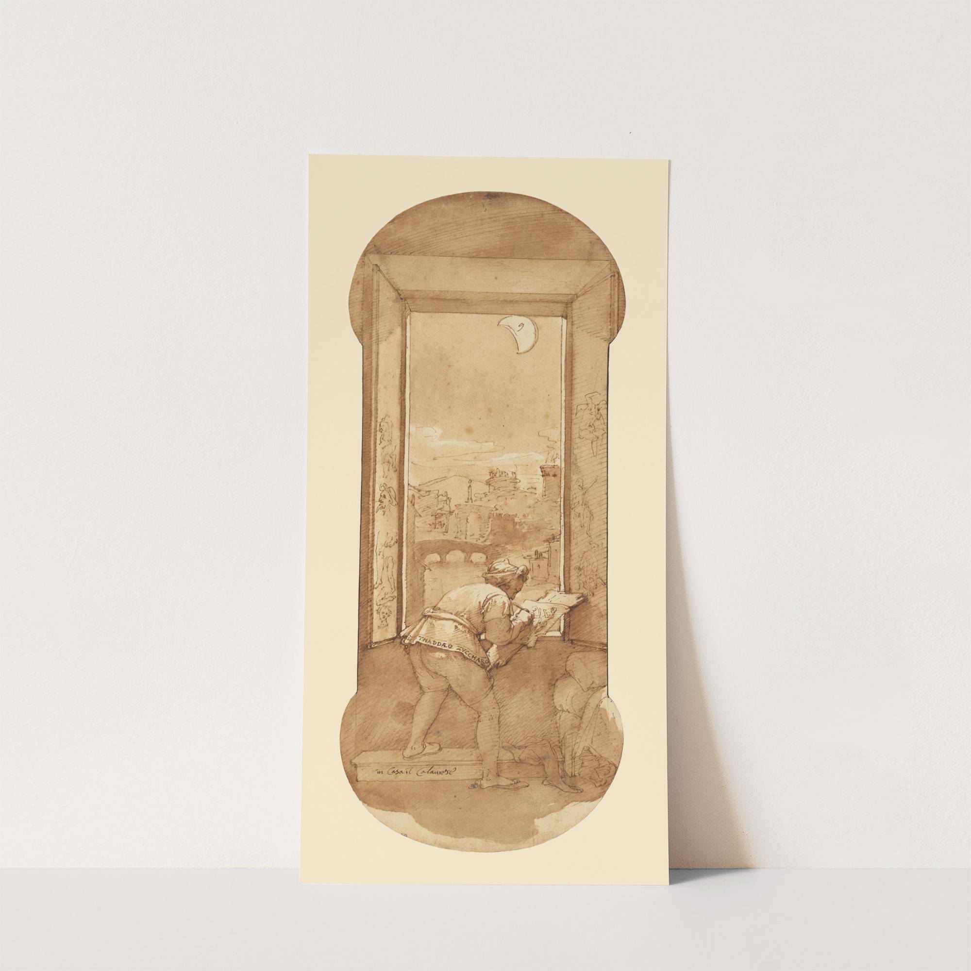 Taddeo Drawing by Moonlight in Calabrese’s House by Federico Zuccaro - Wall Art Print