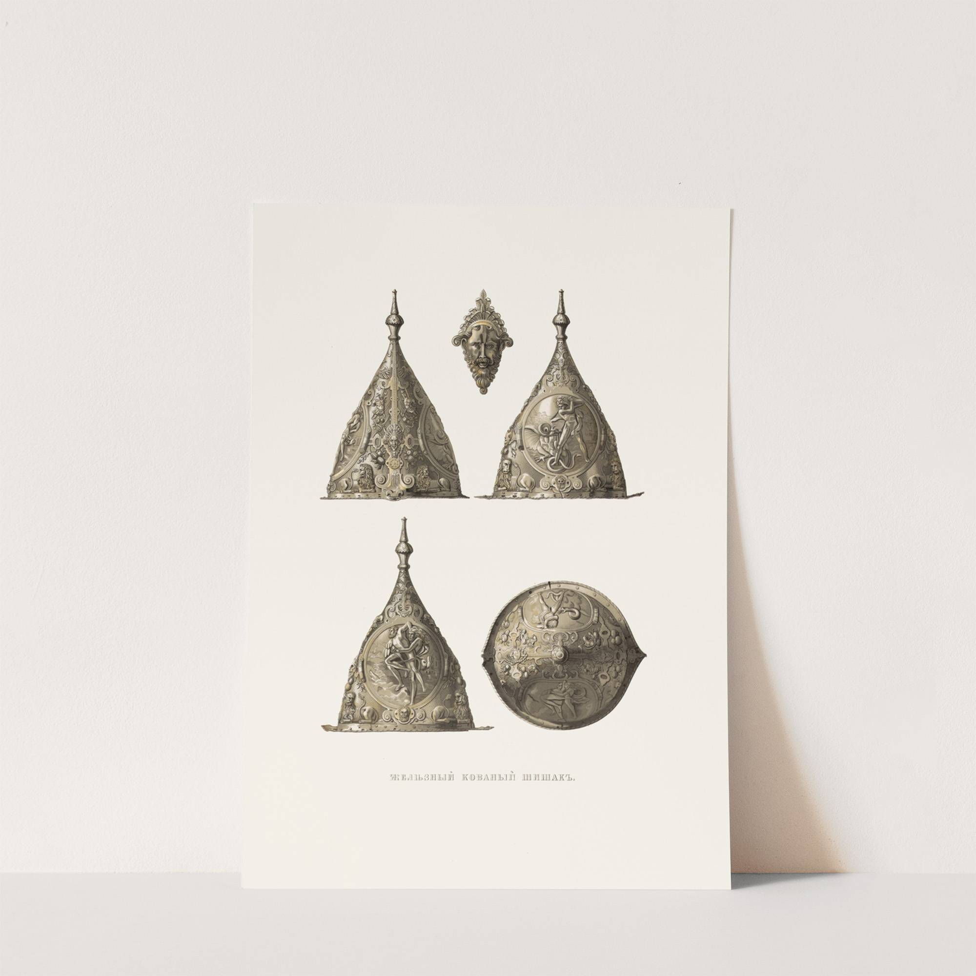 Zheleznyi kovanyi shishak. (izobrazhenie 1.) by Fedor Grigoryevich Solntsev - Wall Art Print