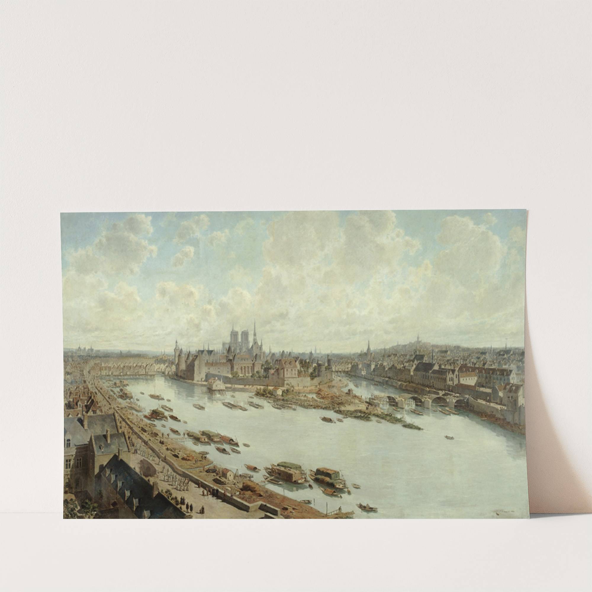 Vue panoramique de Paris en 1588, depuis les toits du Louvre, avec le Pont-Neuf en construction by Fédor Hoffbauer - Wall Art Print