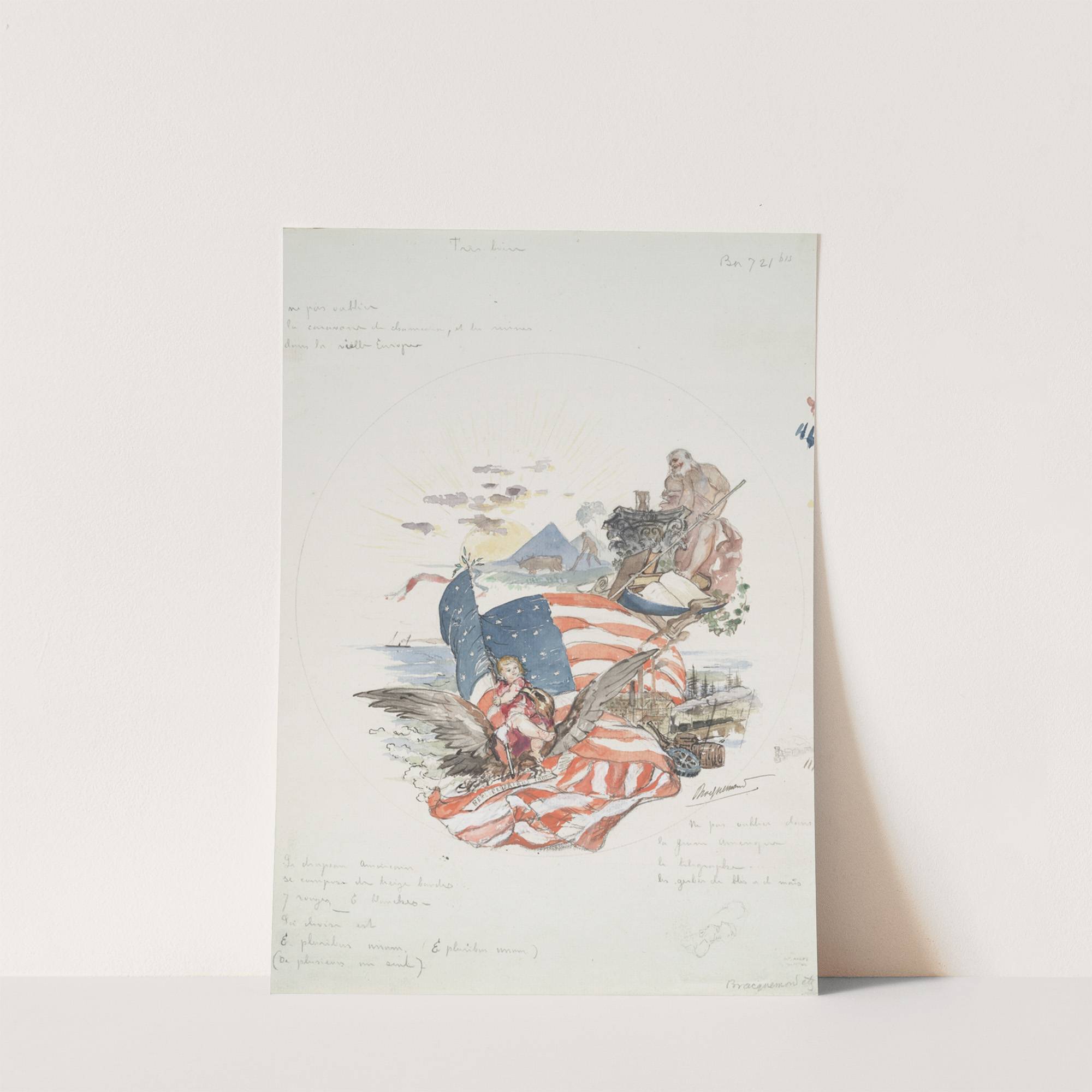 Décor de plat (Le vieux monde et la jeune Amérique). by Félix Bracquemond - Wall Art Print