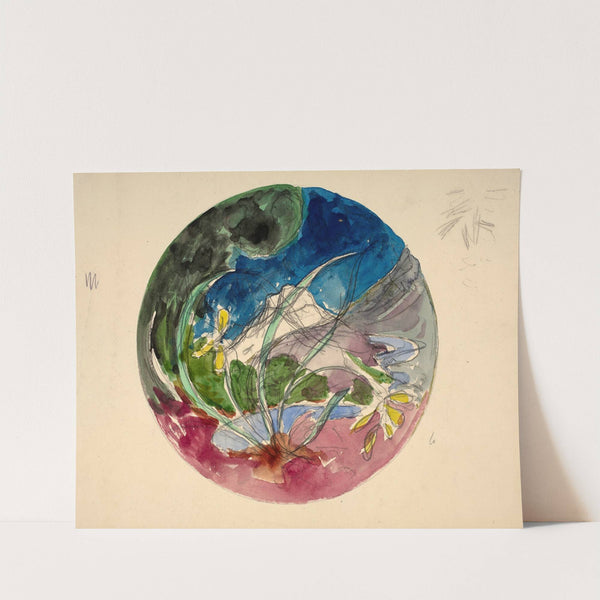 Flowers in front of a mountainous landscape by Félix Bracquemond - Wall Art Print