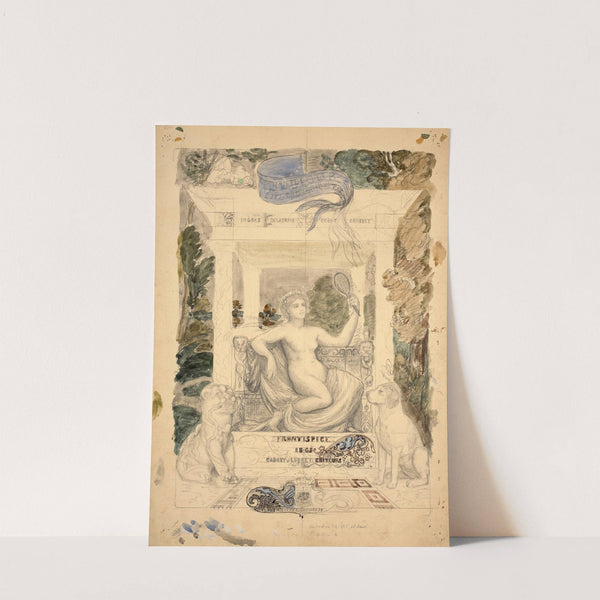 Woman holding a mirror flanked by a lion and a dog, study for the frontispiece of the Société des aquafortistes (1865) by Félix Bracquemond - Wall Art Print