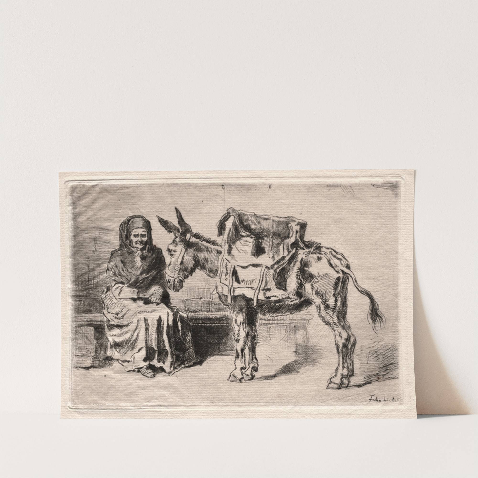 Seated woman with Mule (1875) by Félix Hilaire Buhot - Wall Art Print
