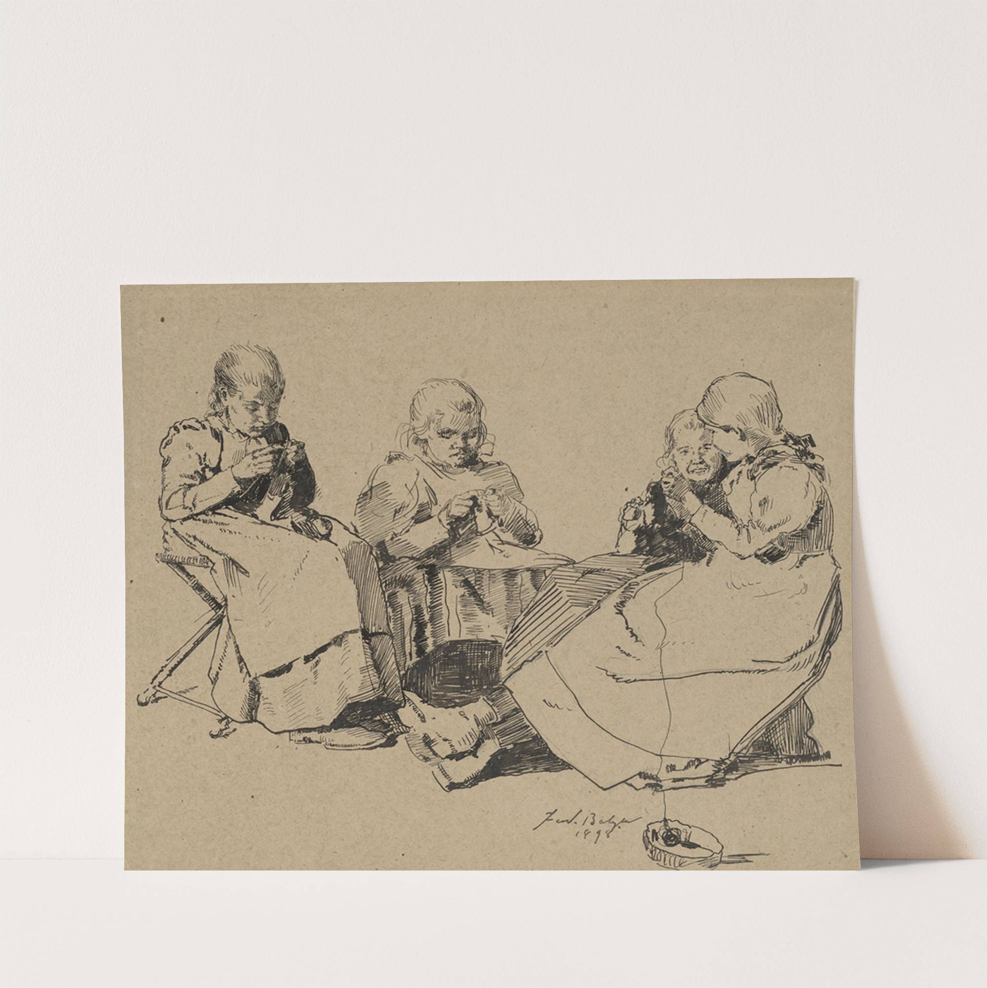 Im Waisenhaus, vier strickende Mädchen by Ferdinand Balzer - Wall Art Print