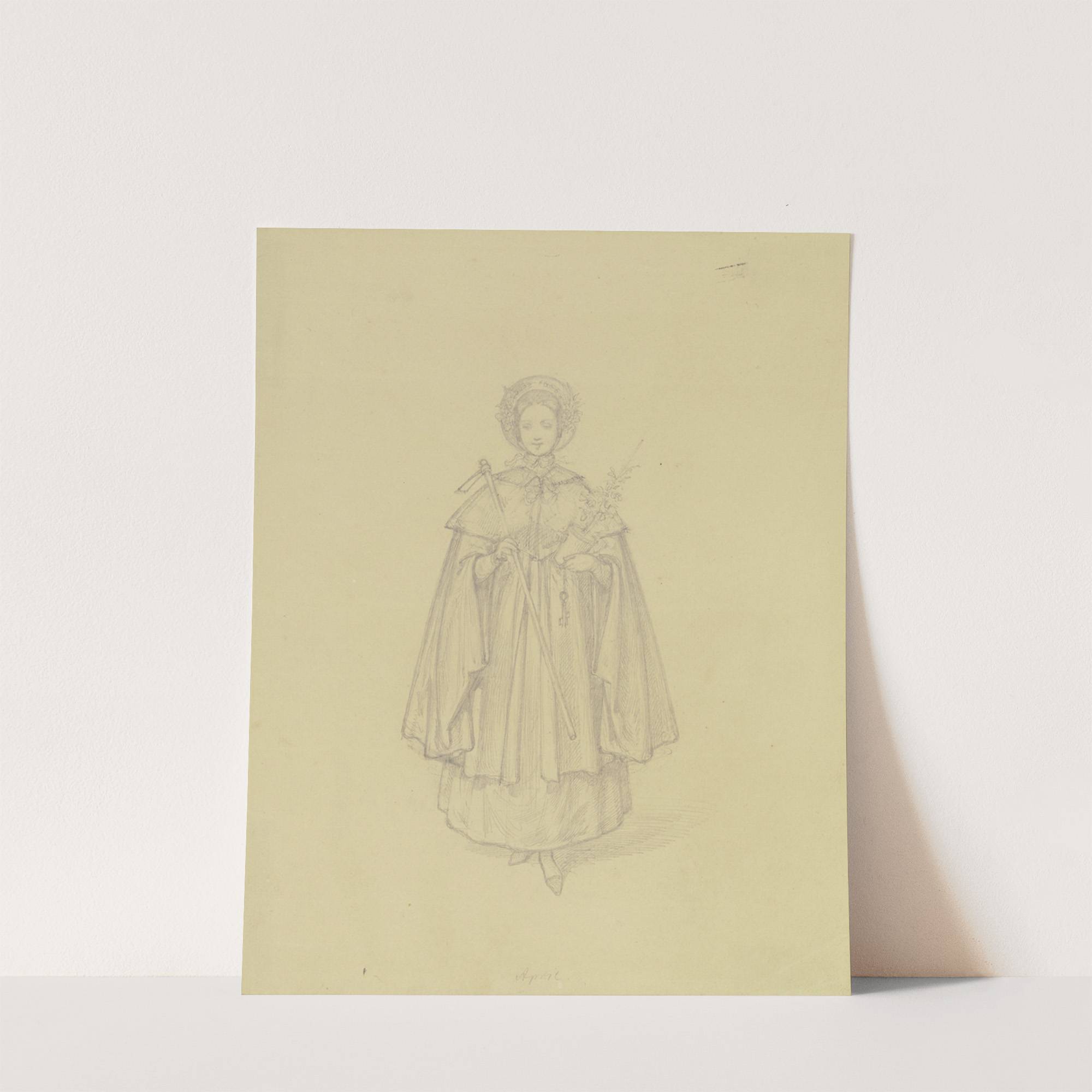 Eine junge Frau mit einem Blumentopf und einer Hacke (Allegorie des Monats April) by Ferdinand Fellner - Wall Art Print