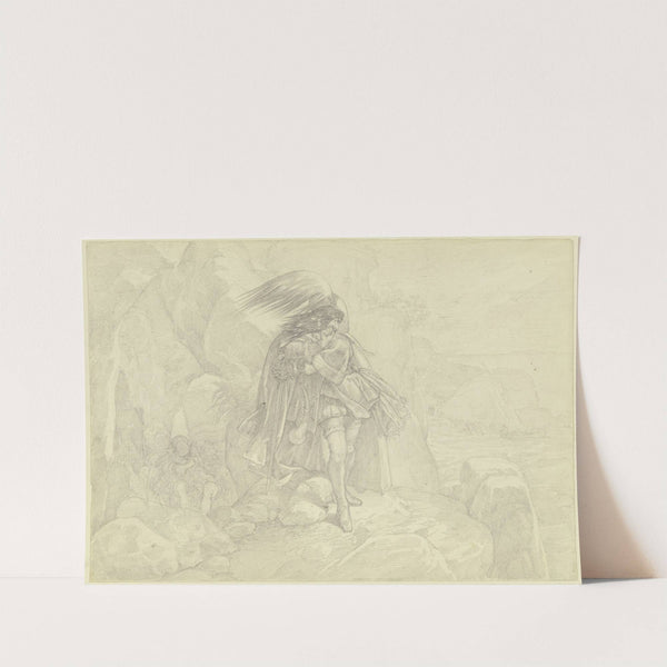 Ungedeutete Szene; Ein Heerführer am Felsenufer des Meeres, die Landung des Feindes beobachtend by Ferdinand Fellner - Wall Art Print