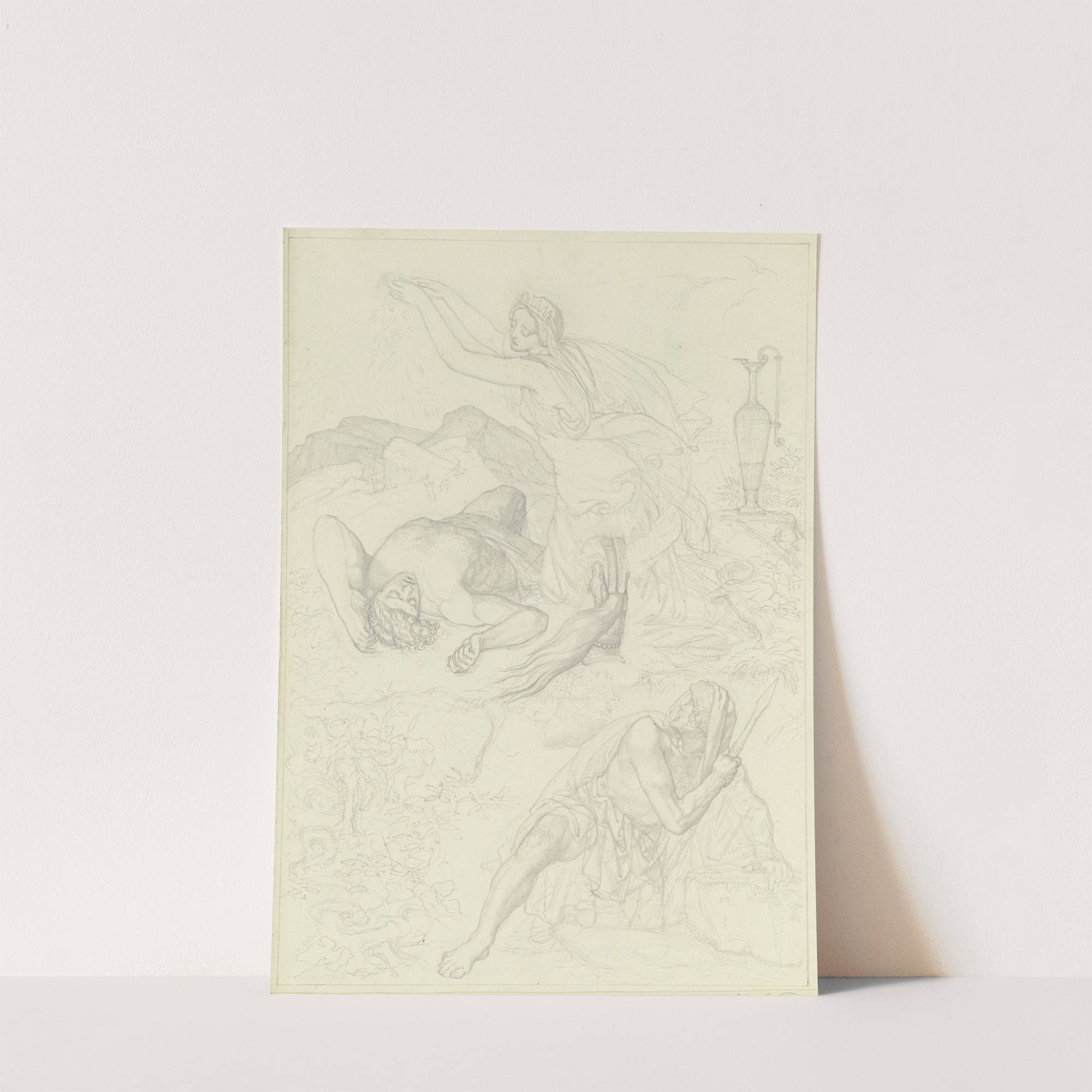 Ungedeutete Szene; Eine antike Königin über einen erschlagenen Helden Blumen streuend by Ferdinand Fellner - Wall Art Print