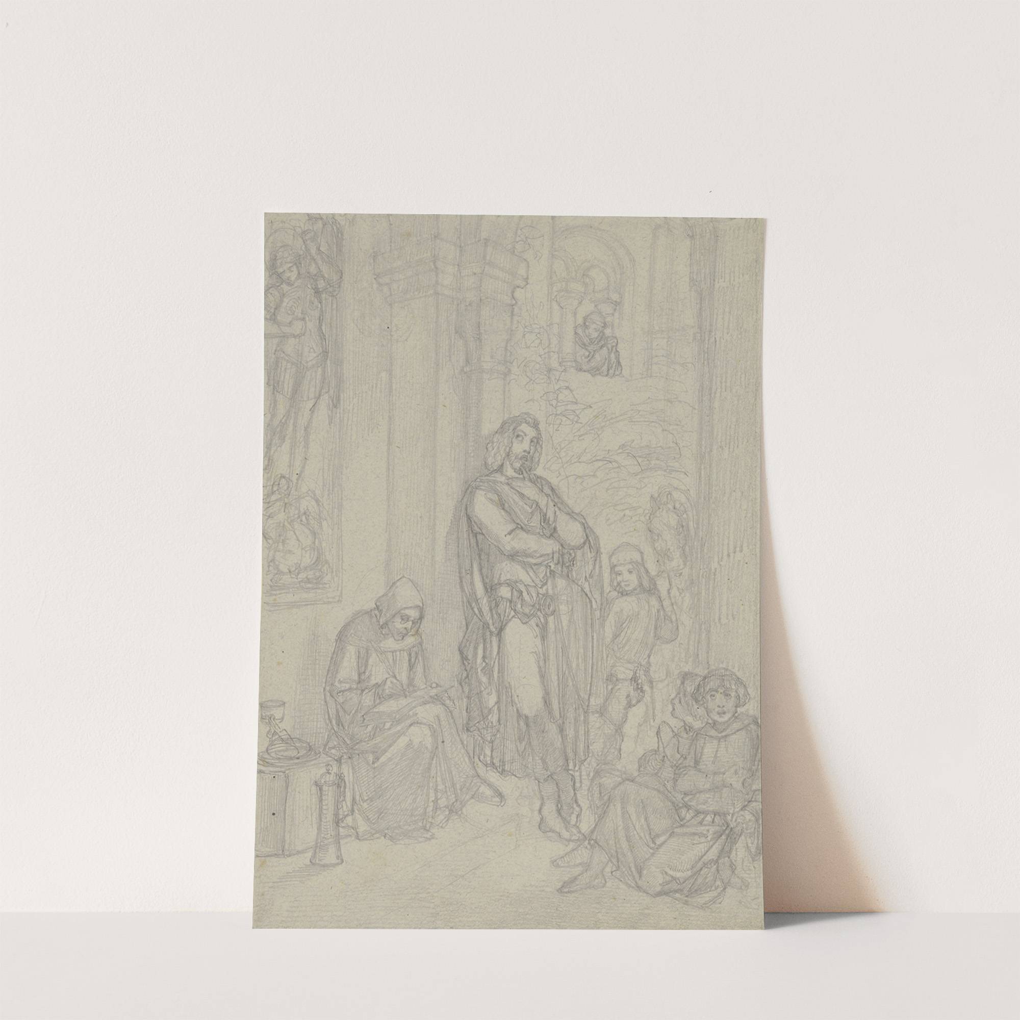 Ungedeutete Szene; Sinnender Ritter in einem Kloster bei einem schreibendem Mönch by Ferdinand Fellner - Wall Art Print