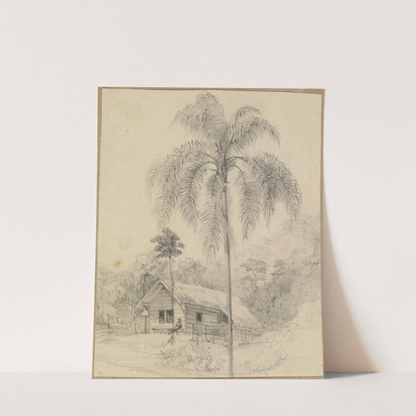 Blockhaus und Palme (mit Staffage) by Ferdinand Keller - Wall Art Print