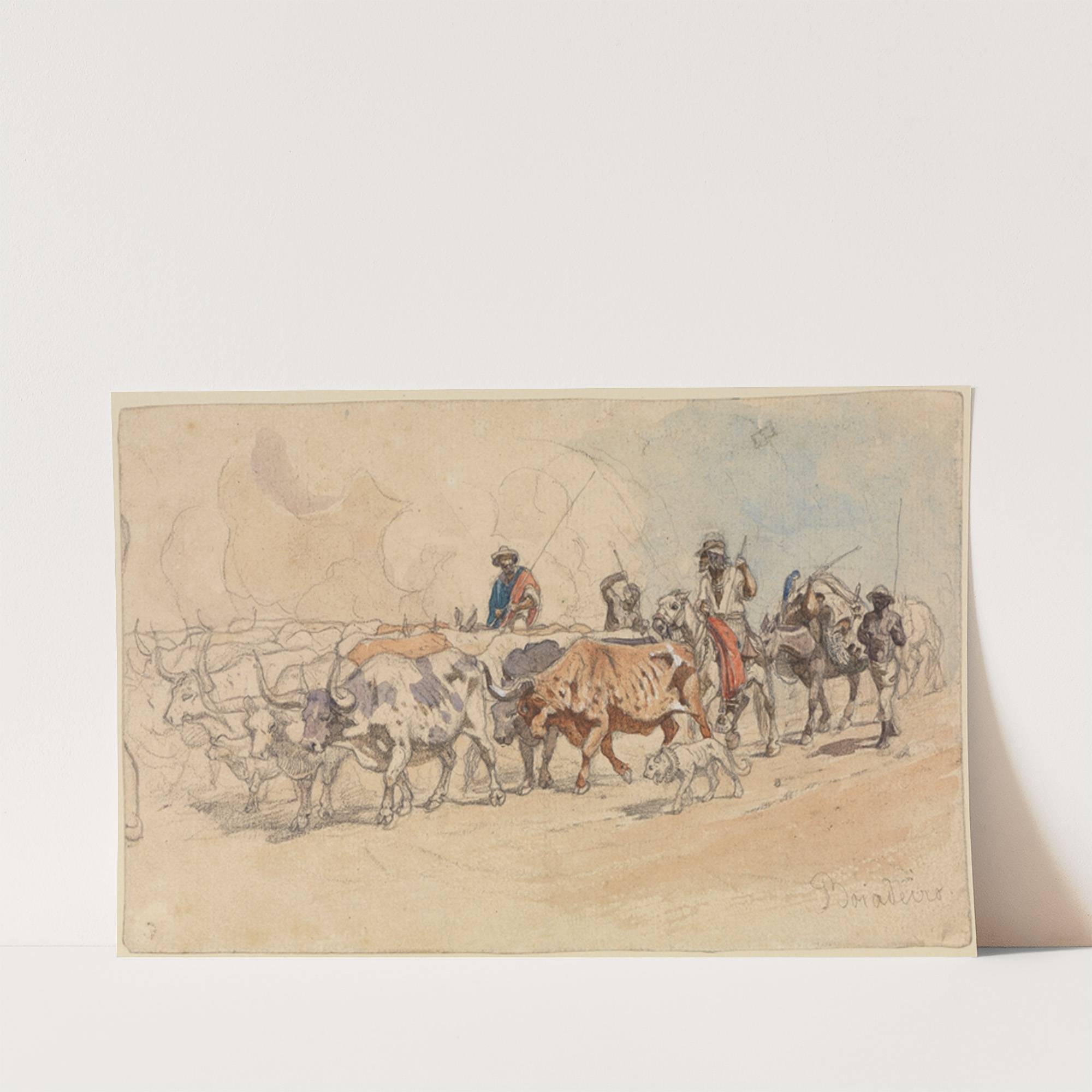 Treiber auf Mauleseln mit einer Büffelherde by Ferdinand Keller - Wall Art Print