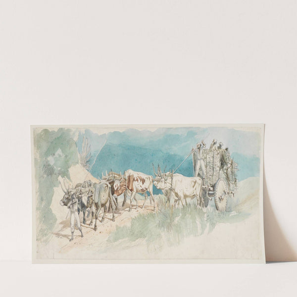 Zweiradgespann, von sechs Büffeln gezogen by Ferdinand Keller - Wall Art Print
