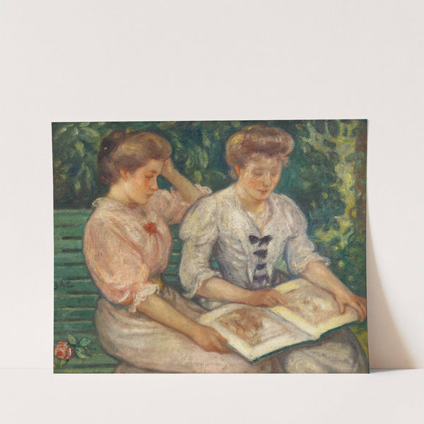 Blanche Viau et Alice Viau (Deux jeunes filles lisant sur un banc) by Georges d'Espagnat
