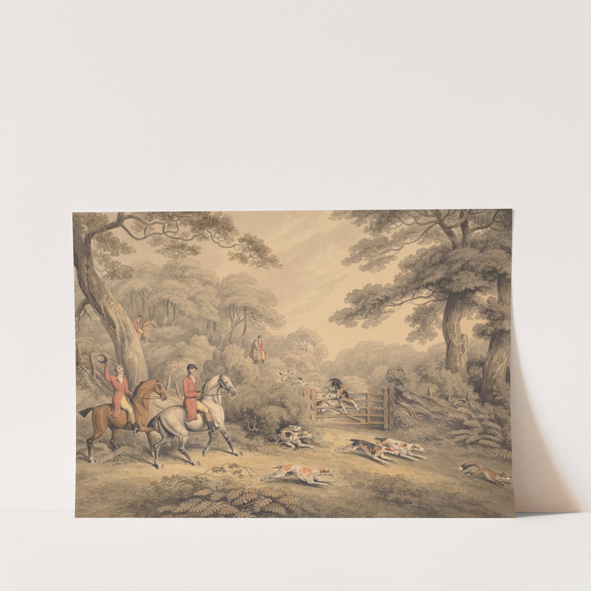 This captivating print features "Foxhunting: Breaking Cover" by Samuel Howitt, capturing the essence of an English hunting scene with meticulous detail. The image is imbued with soft earthy tones, creating a nostalgic atmosphere reminiscent of past centuries. In the foreground,...