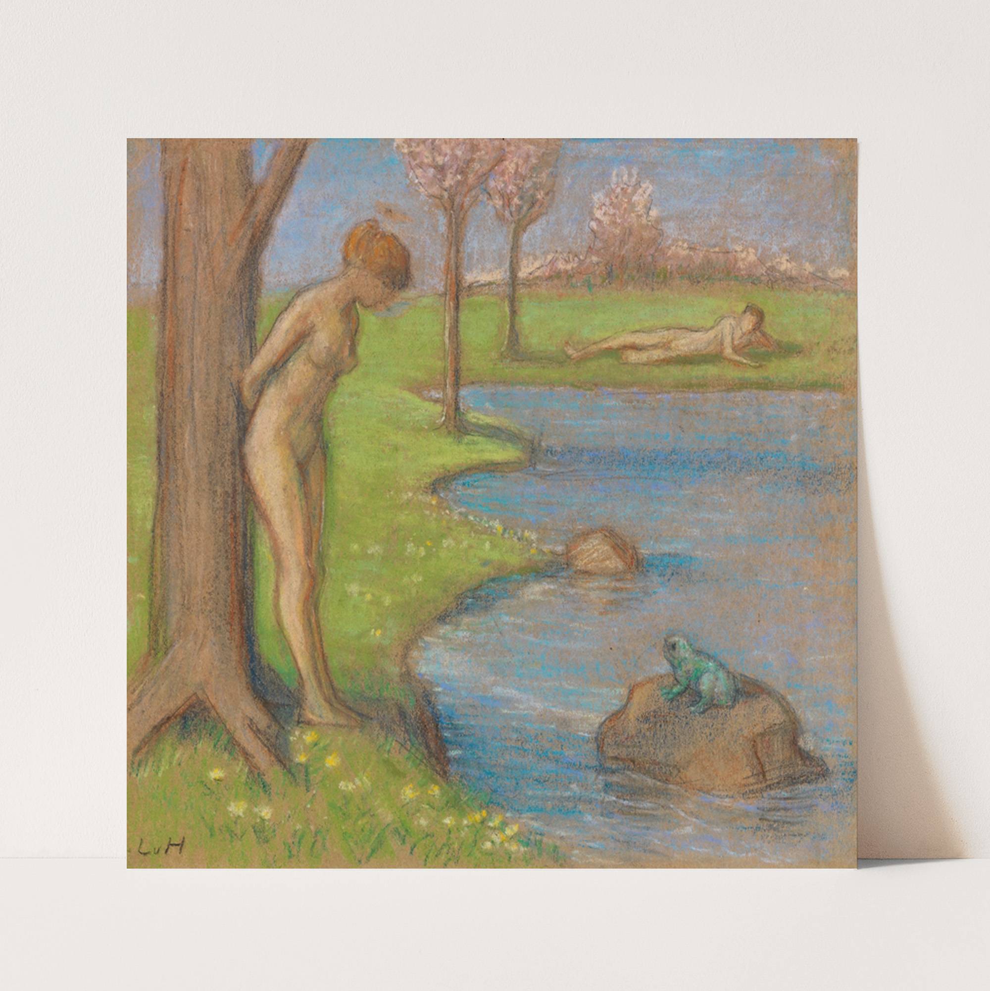 Frühlingslandschaft mit Paar am Froschteich (ca 1900) by Ludwig von Hofmann - Wall Art Print