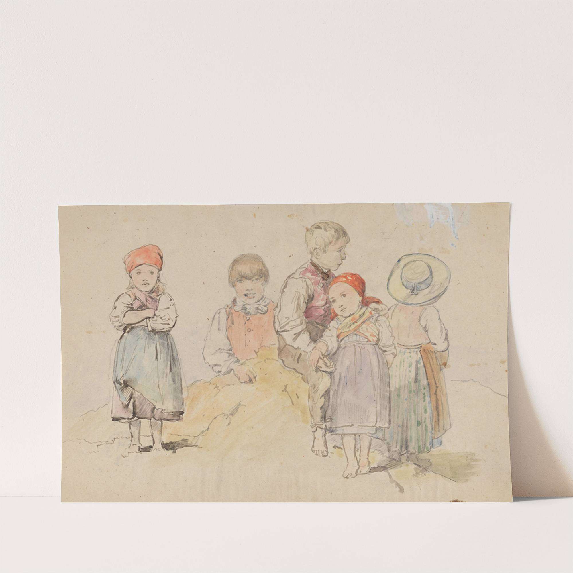 Fünf Schwarzwälder Bauernkinder by Johann Baptist Kirner - Wall Art Print