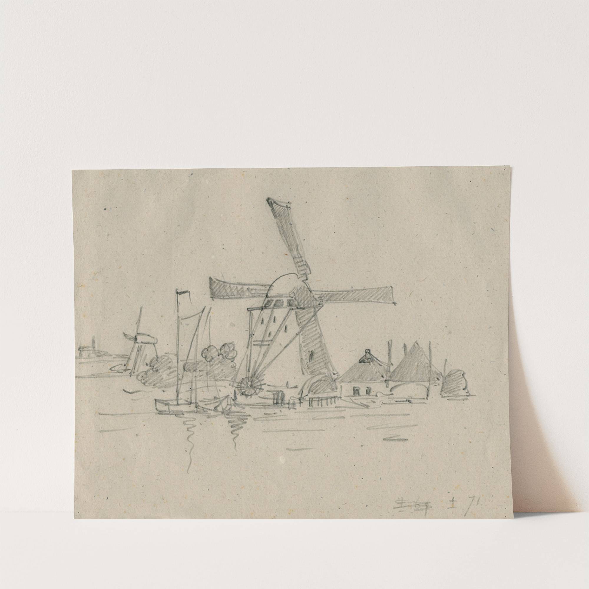 Mills and a farmhouse on a lake by Floris Verster - Wall Art Print