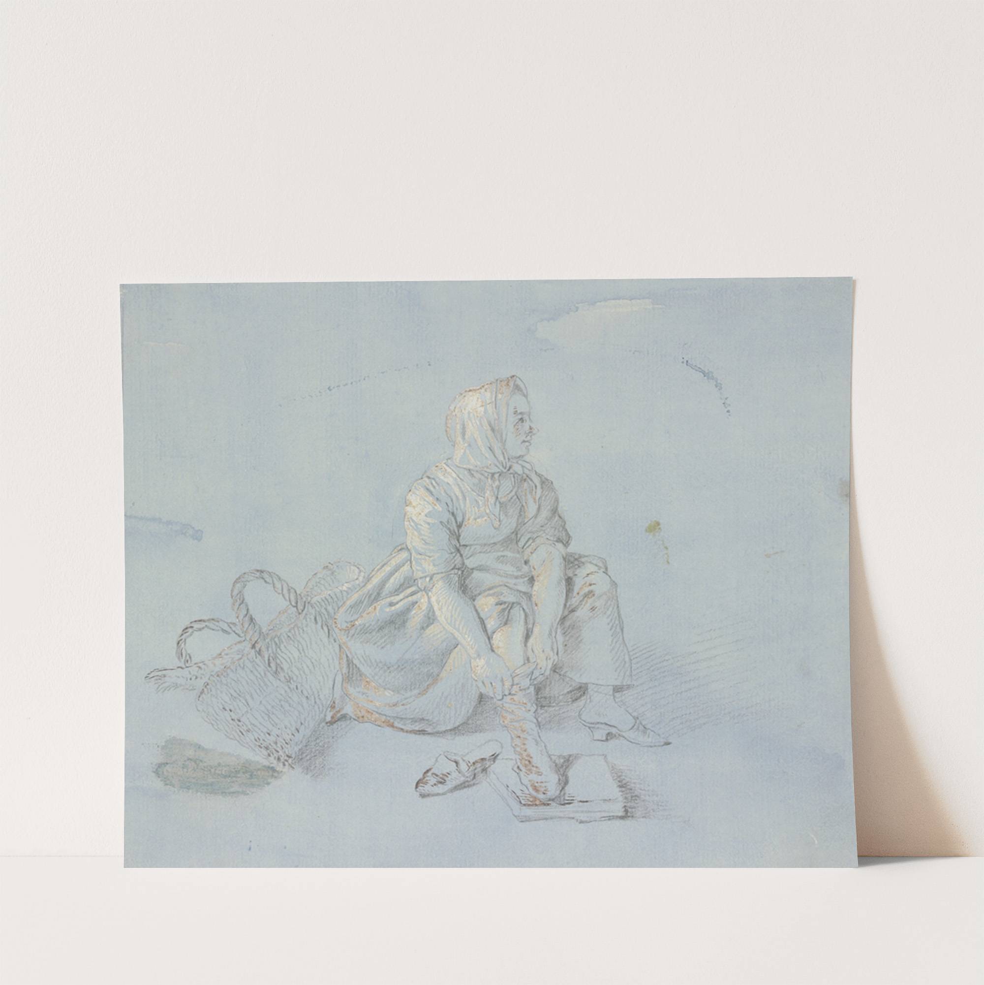 Mädchen, einem Strumpf oder Stiefel anziehend by Francesco Londonio - Wall Art Print